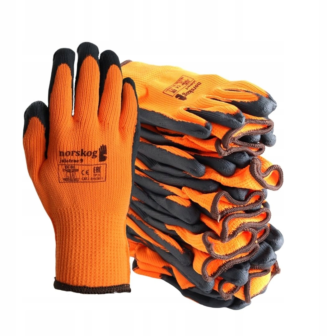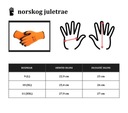 Norskog Juletrae рабочие перчатки, предназначенные для работы при низких температурах. Сшиты из прочного, бесшовная трикотажная махровая ткань из полиэстера и хлопка с отражающим цветом, которая улучшает видимость пользователя. В захватной части они покрыты водонепроницаемым шероховатым латексом, обеспечивает хорошее сцепление и маневренность во время работы. Перчатки заканчиваются эластичным съемник, который приятен на ощупь и идеально подходит к форме запястья, обеспечение полного комфорта работы. истирание.