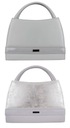 Kuferek damski klasyczny stylowy wzór. Torebka na co dzień, a także na specjalne okazje. Na przodzie torebki elegancki lakierowany pasek z ozdobą w kolorze srebrnym. Wewnątrz torby przegródka z kieszenią na zamek. Kufer posiada długi pasek na ramię (100cm).