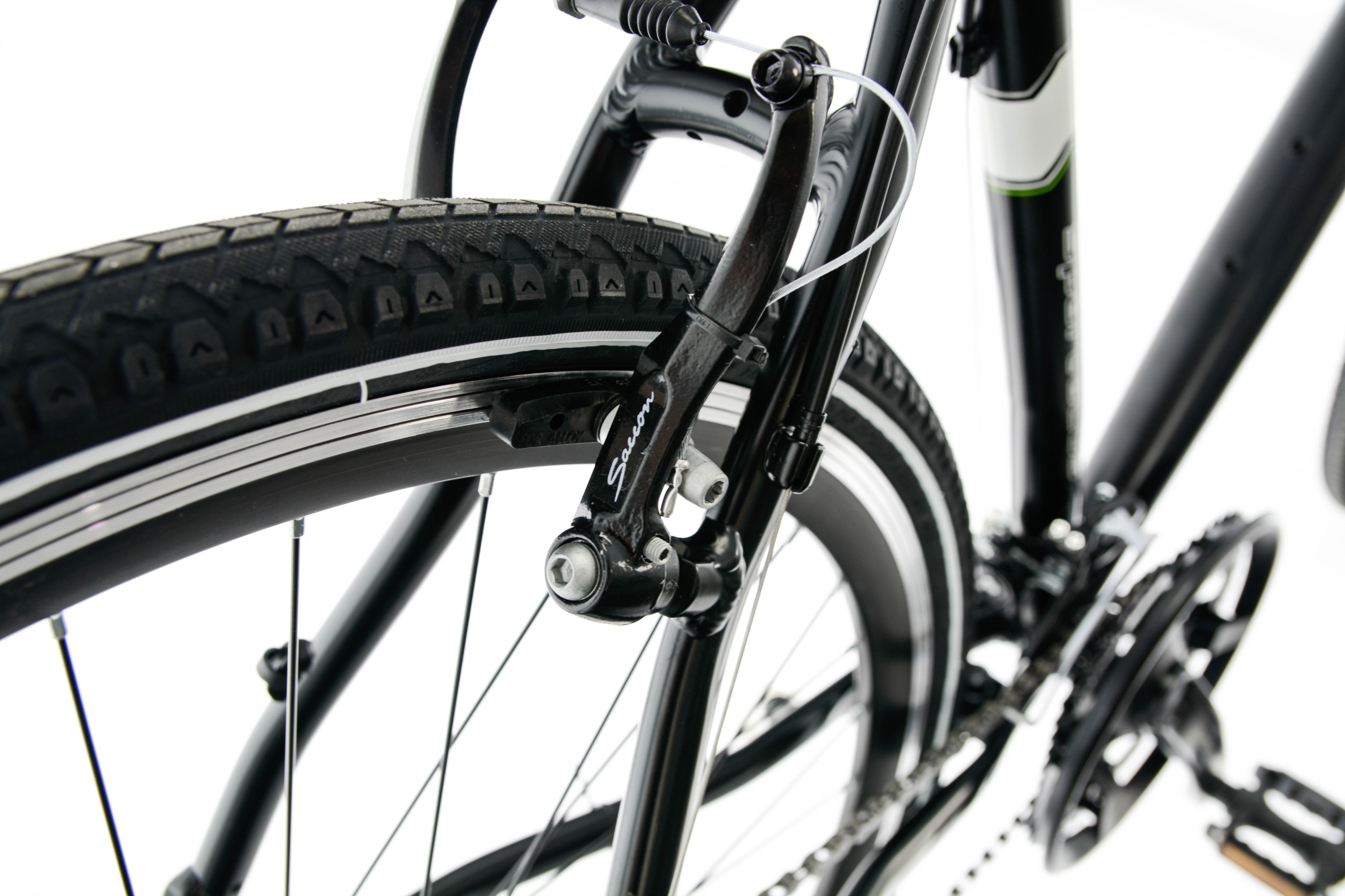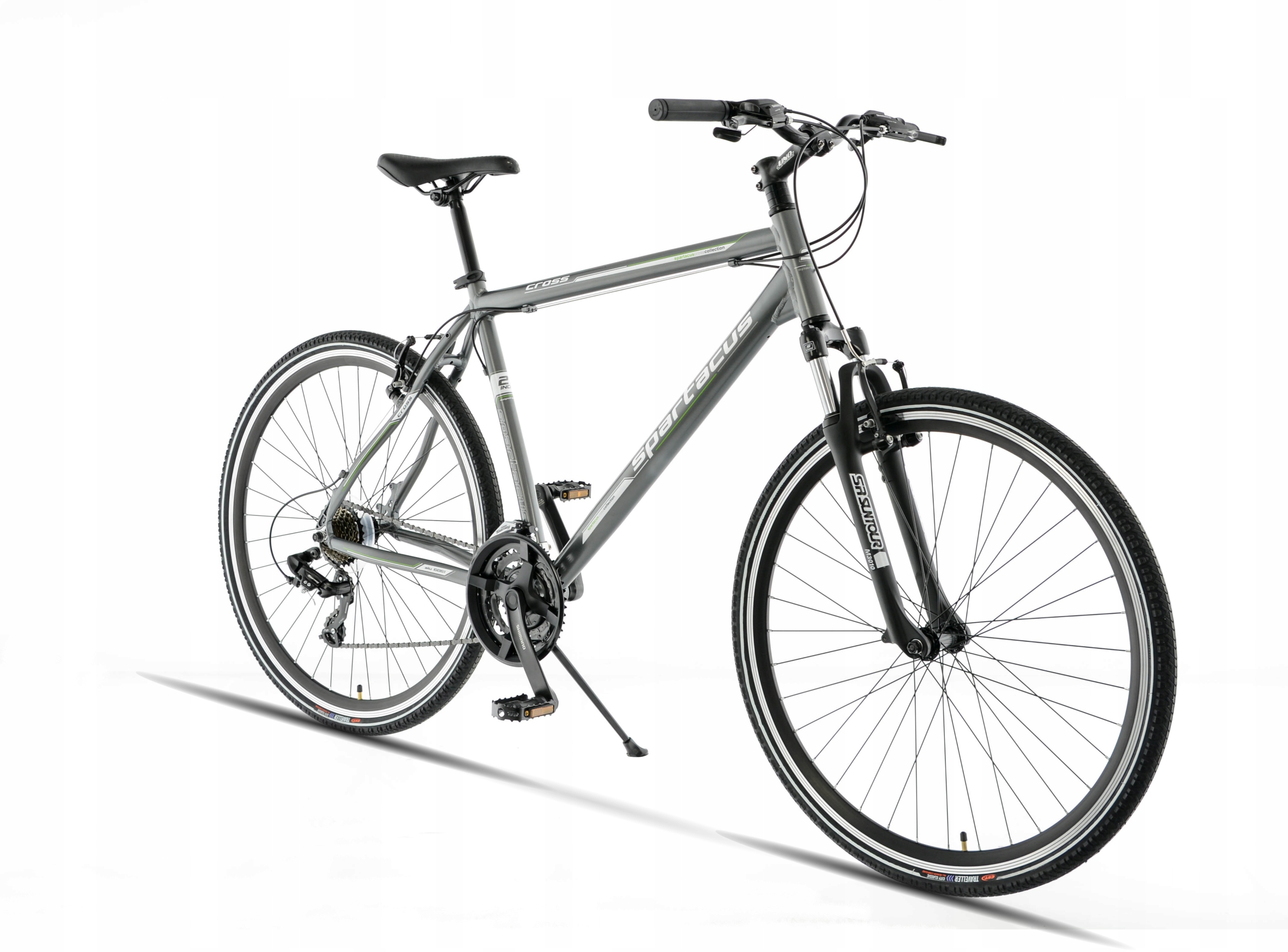 Велосипед был собран на прочном приводе SHIMANO. 28 дюймов колеса, одетые в шины CST, гарантируют приятную и легкую езду. Амортизационная вилка SR-SUNTOUR он может справиться со всеми неровностями гравийных дорог и городских бордюров.