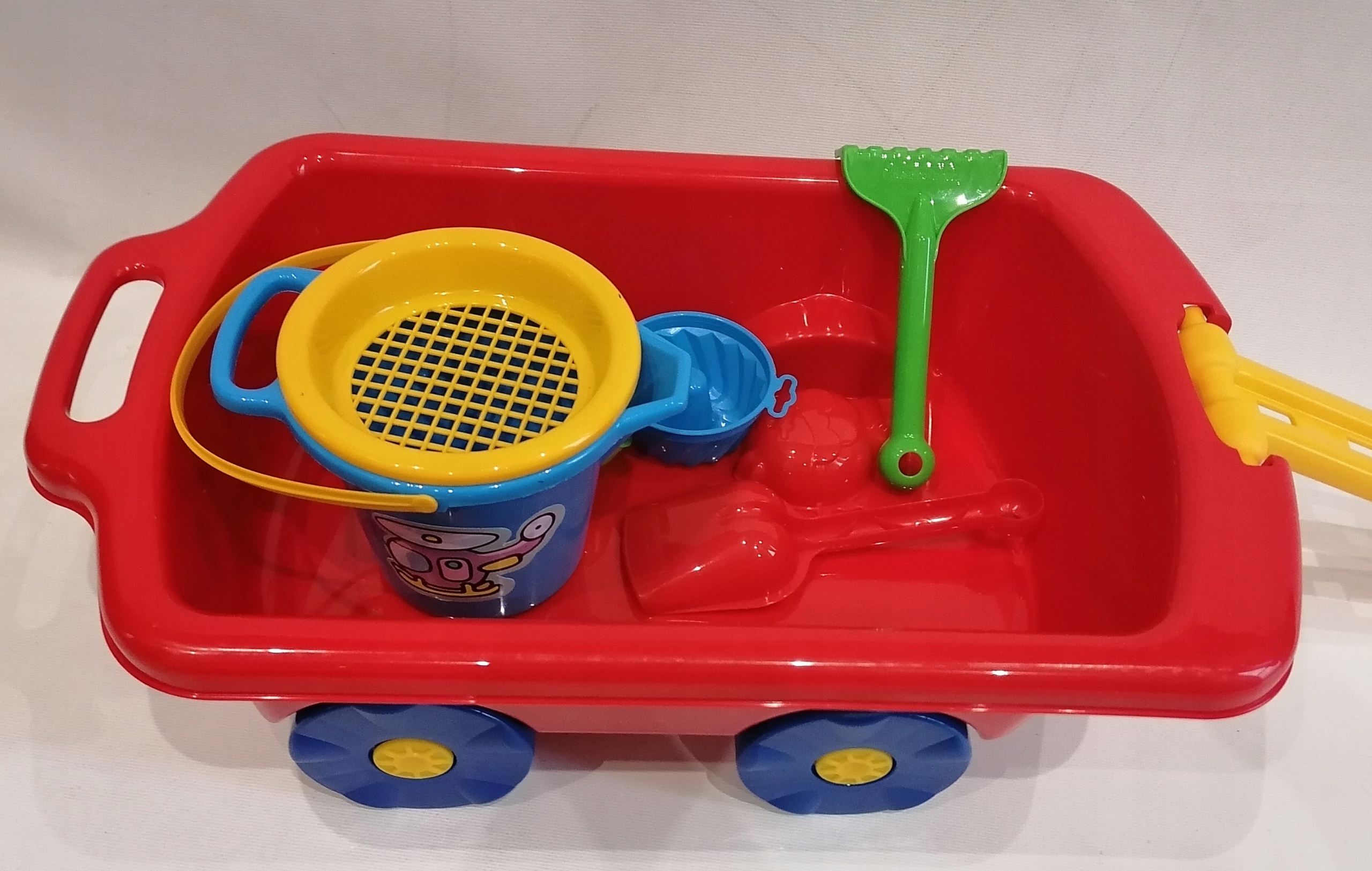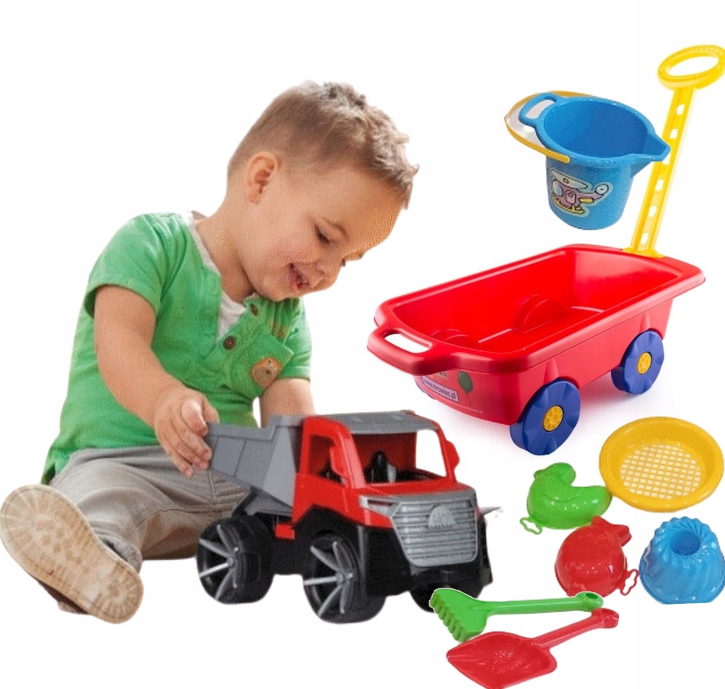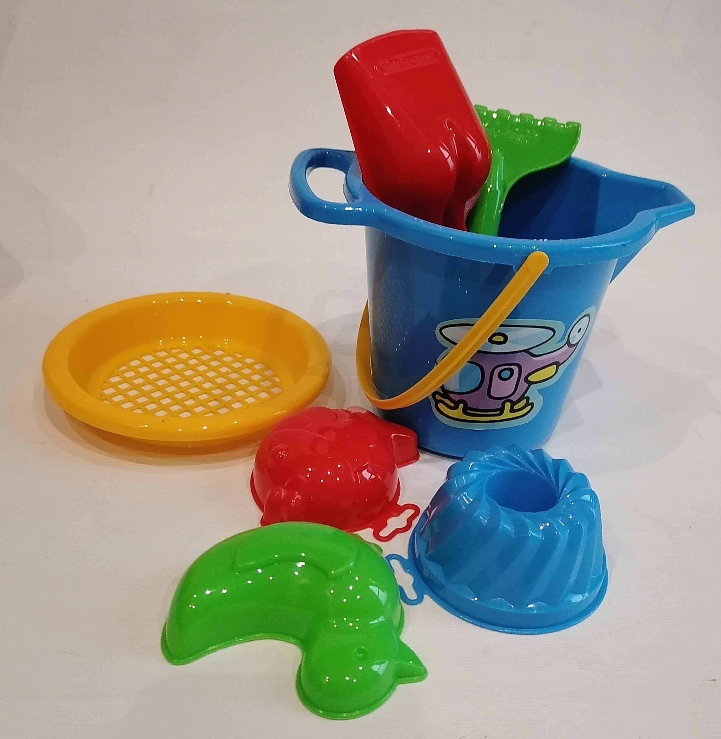 W komplecie znajdują się wiaderko łopatka ,grabki ,foremki . Zestaw zawiera wszystko, co niezbędne, by zapewnić kreatywne i rozwijające wyobraźnię oraz koordynację ruchową zabawy w piasku lub w wodzie. Czego można chcieć więcej? Łopatki w dłoń i do dzieła...