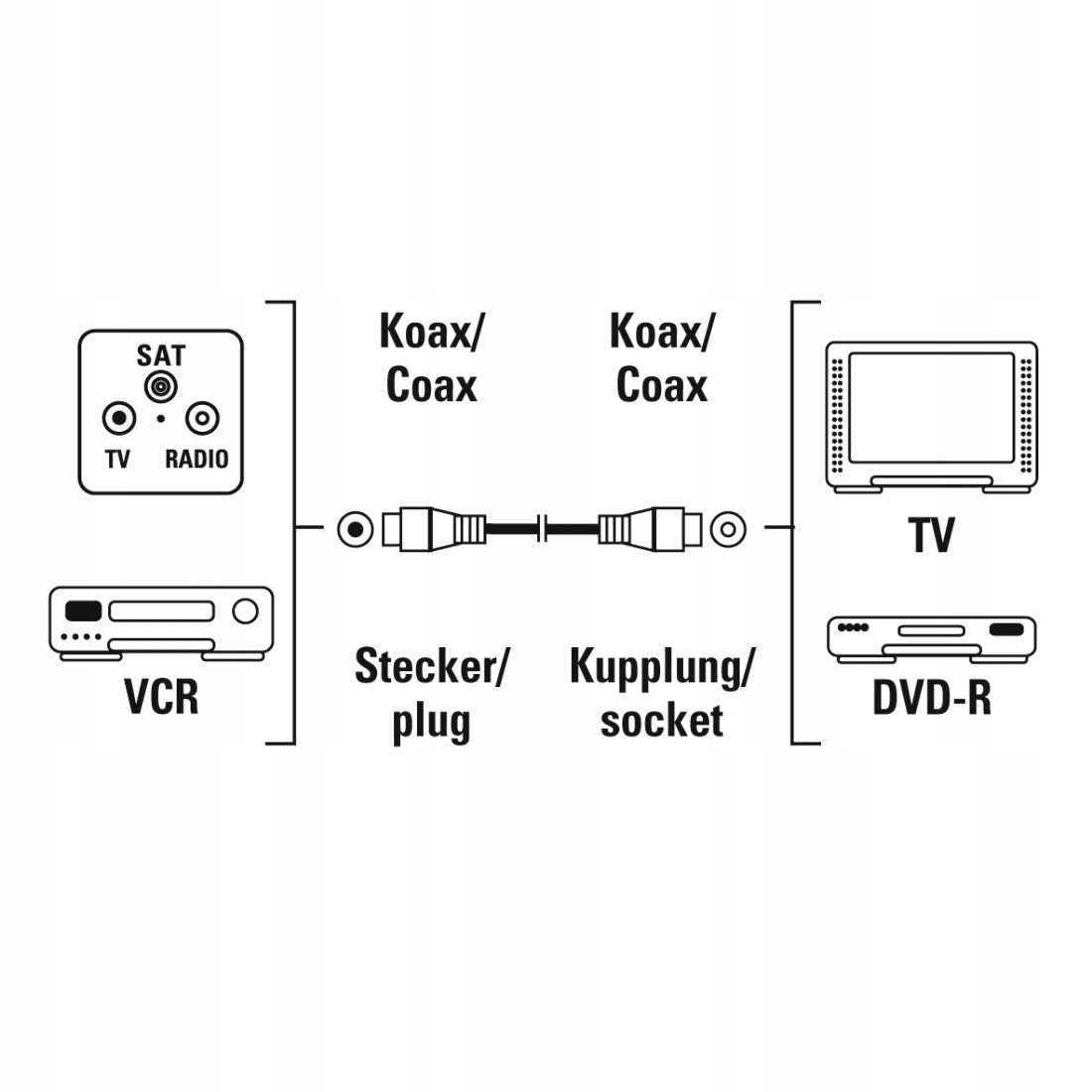 Umożliwia podłączenie telewizora, dekodera telewizji naziemnej lub innego odbiornika ze standardowym złączem IEC Coax RF z antenowym gniazdem ściennym RTV.
