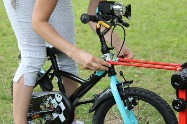 Меры предосторожности: если велосипед имеет боковые колеса, то перед тем, как приступить к при использовании велосипеда ребенка с буксировочной планкой, вы должны повернуть их вверх или разобрать. Нет разрешается использовать аксессуары или детали, которые могут мешать работе буксирной штанги.