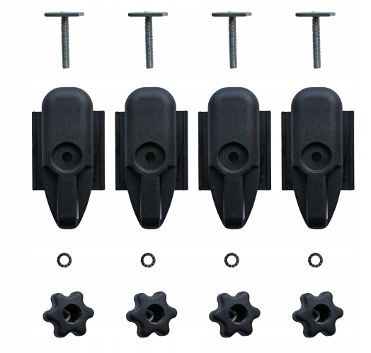 Adaptery kompatybilne do większości dostępnych boxów na naszym rynku n.in. boxy o nośności 50 i 75 kg montowane na systemach cybantowych: