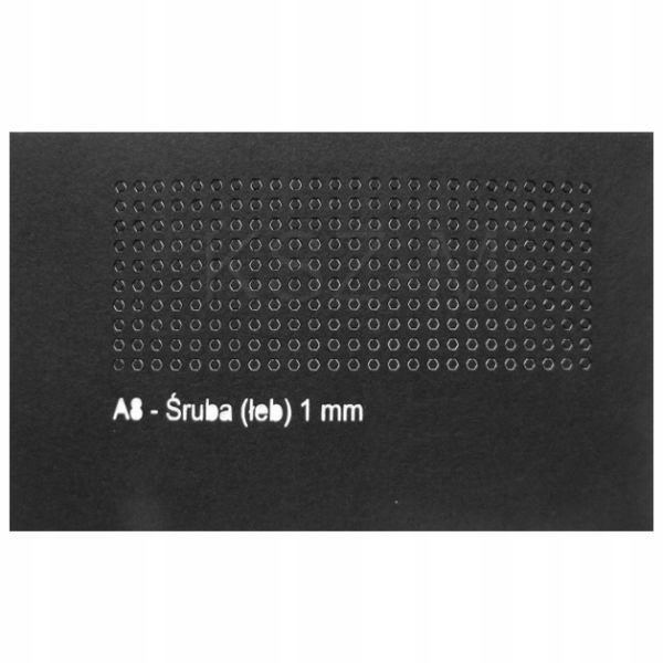 250 головок винтов, вырезанных лазером, просто аккуратно вытолкните их из листа. Элементы вырезанный в перманентно черном (также в поперечном сечении), нерасширяющемся толстом картоне 0,4 мм
