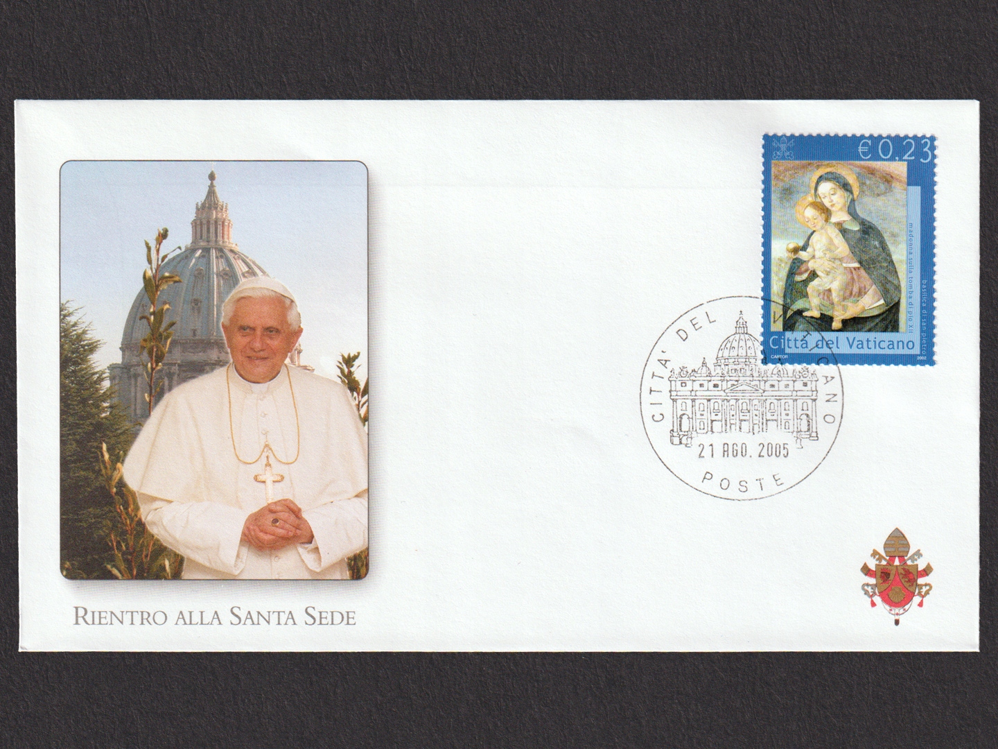 Kompletny zestaw sześciu okolicznościowych kopert celebrujących podróż papieża Benedykta XVI do Niemiec pomiędzy 18. a 21. sierpnia 2005 roku.