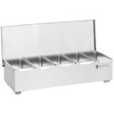 Uniwersalne pojemniki barmańskie od Royal Catering służą do przechowywania dodatków do drinków lub deserów, przypraw, owoców itp. Wytrzymały model RCCBS 5 ze stali nierdzewnej powstał z myślą o użytku w barach, pubach, restauracjach, klubach czy w czasie imprez plenerowych, ale sprawdzi się także w Twojej kuchni.