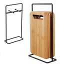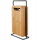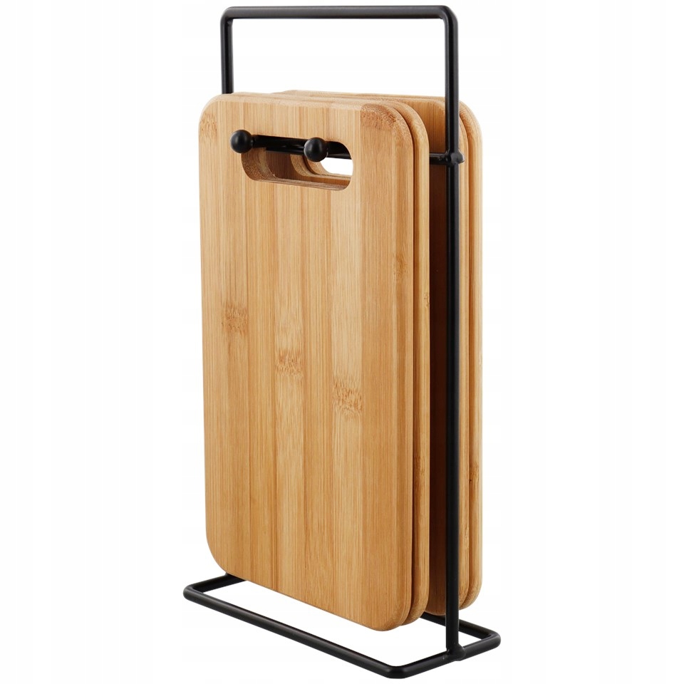 Набор бамбуковых разделочных досок, подвешенных на черной металлической подставке. Доски подвешенные на подставке, они не только будут выглядеть фантастически на вашей кухне, но и позволят контроль за порядком.