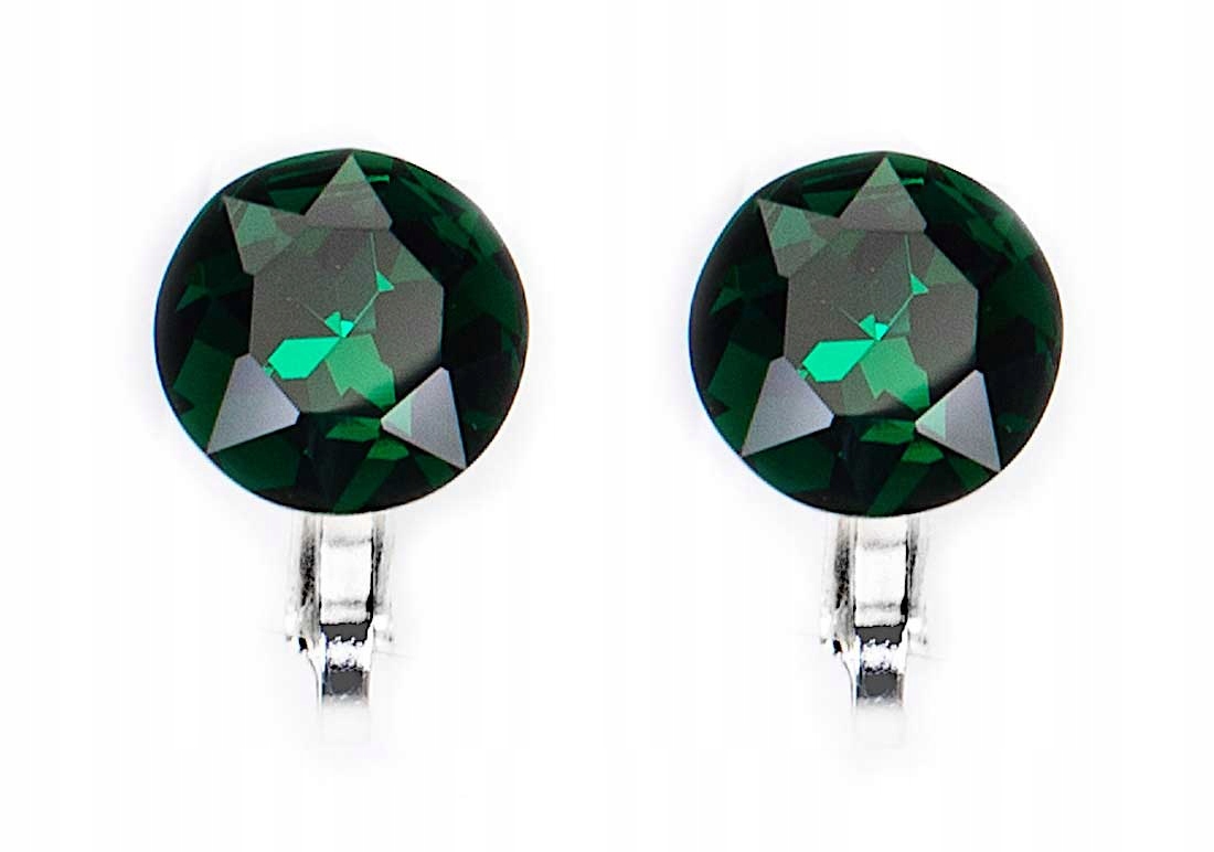 Klipsy kryształowe wysokiej jakości, z dużymi, błyszczącymi kryształami zielonymi (emerald), pokryte srebrem, bez niklu.