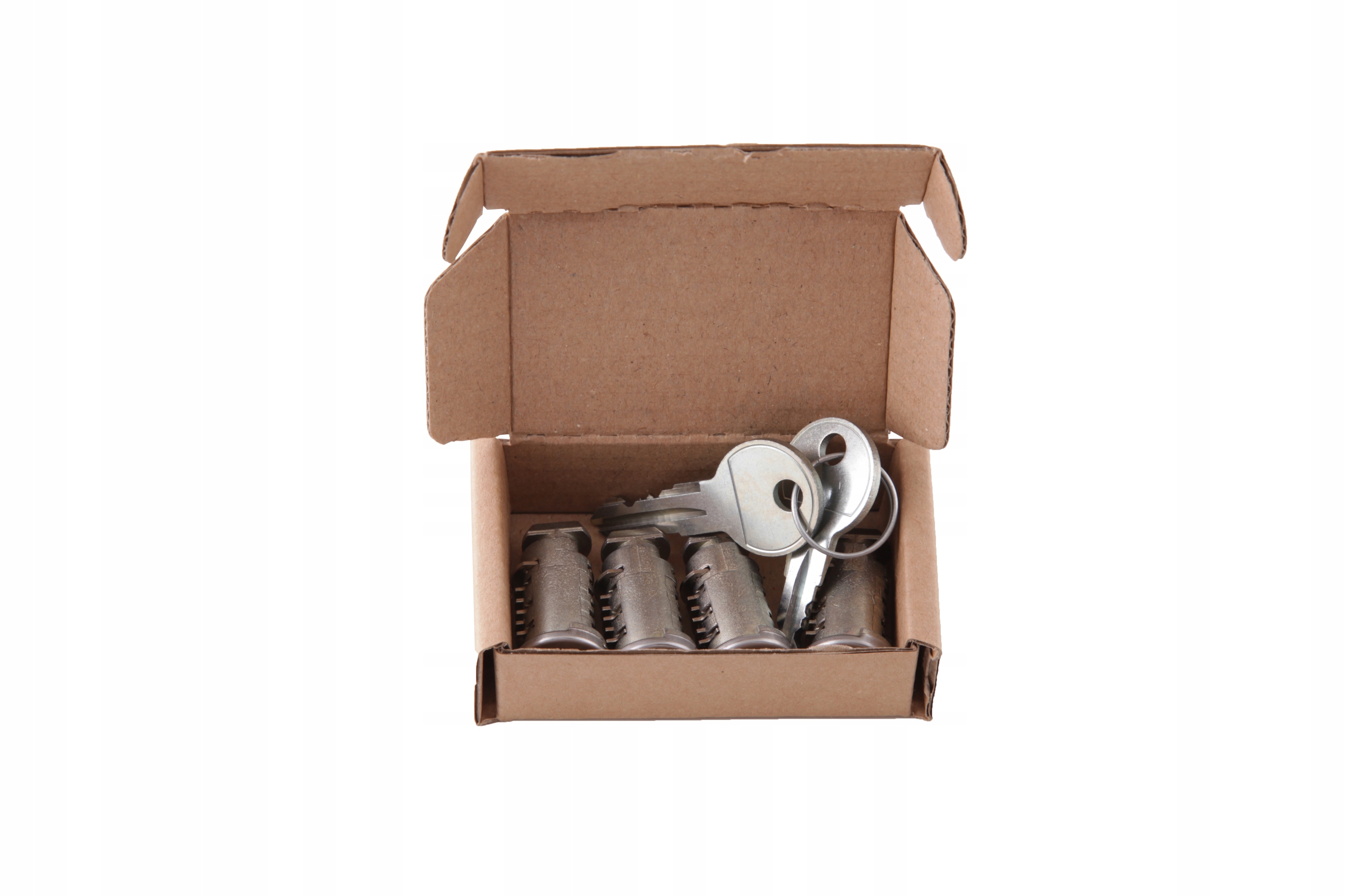 W komplecie znajdują się 4 wkładki zamkowe oraz dwa jednakowe klucze. Wkładki posiadają unikalny numer, dzięki czemu załączone kluczyki pasują do jednego kompletu wkładek.
