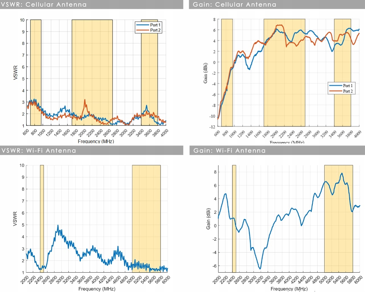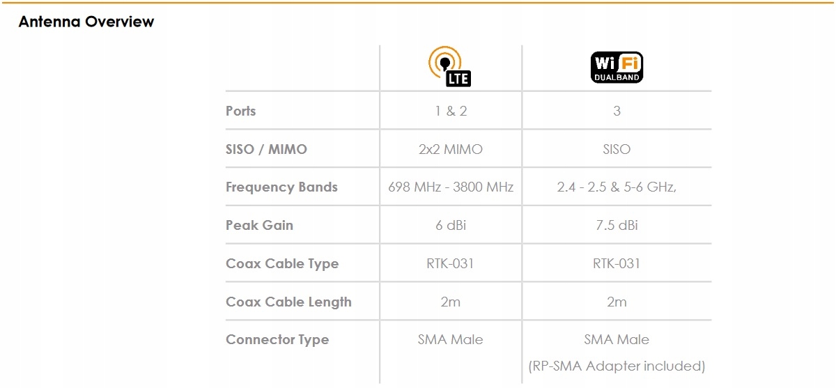 - LTE (2X2 MIMO), dwuzakresowe Wi-Fi (SISO))