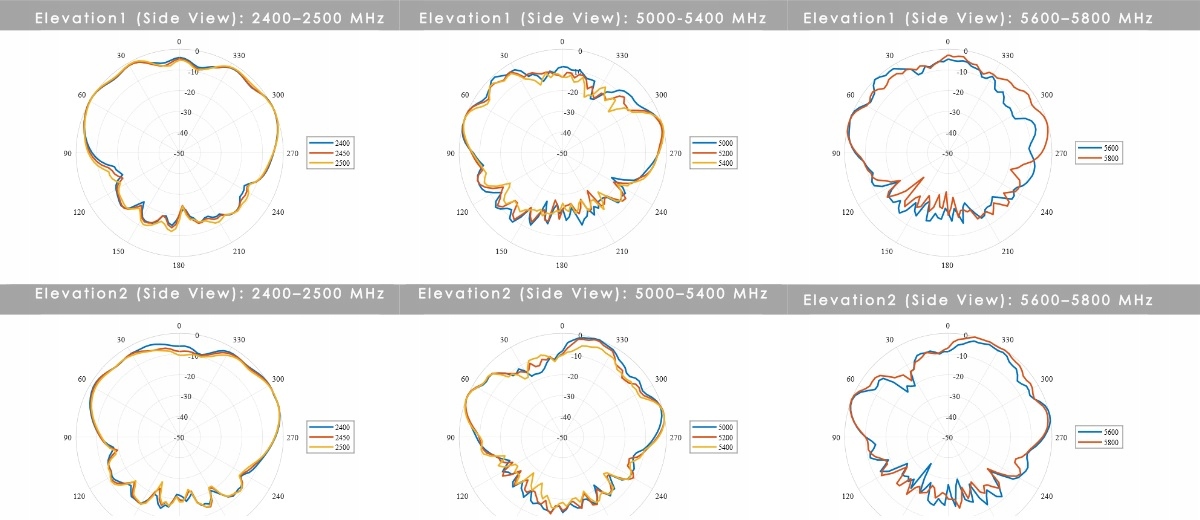 7,5 dBi to szczytowe wzmocnienie we wszystkich pasmach 2400–2500 i 5000–5800 MHz