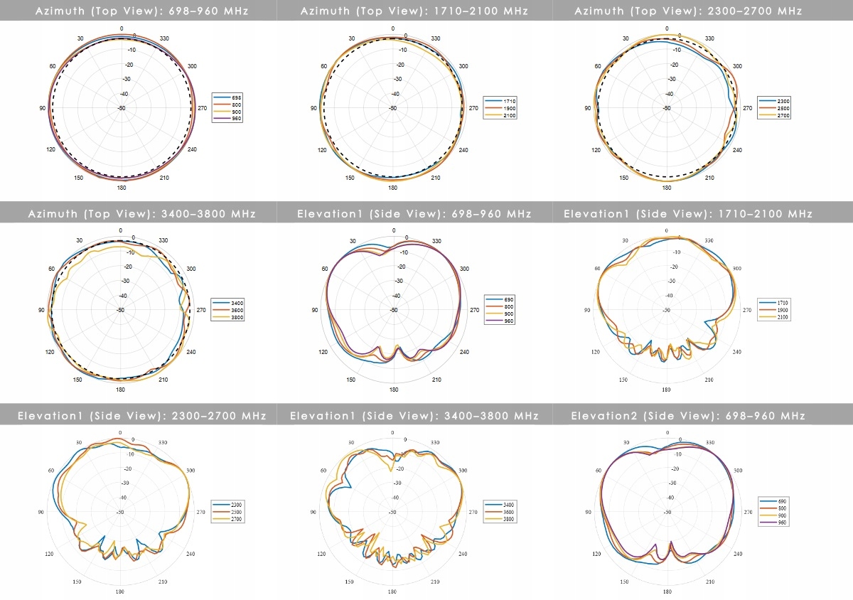 6dBi to szczytowe wzmocnienie we wszystkich pasmach od 698-960,1710-2700 i 3400-3800 MHz