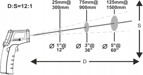 с расстоянием 12 см точка измерения составляет 1 см и по аналогии 24 см-2 см, 48-4 см и т.д.