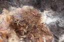 Лоб ствола перерубить, порубить пилой или топором. Готово тщательно распределите препарат по поверхности ствола. Закрепите ствол, наложив 5 см слой опилок или лесной мульчи.