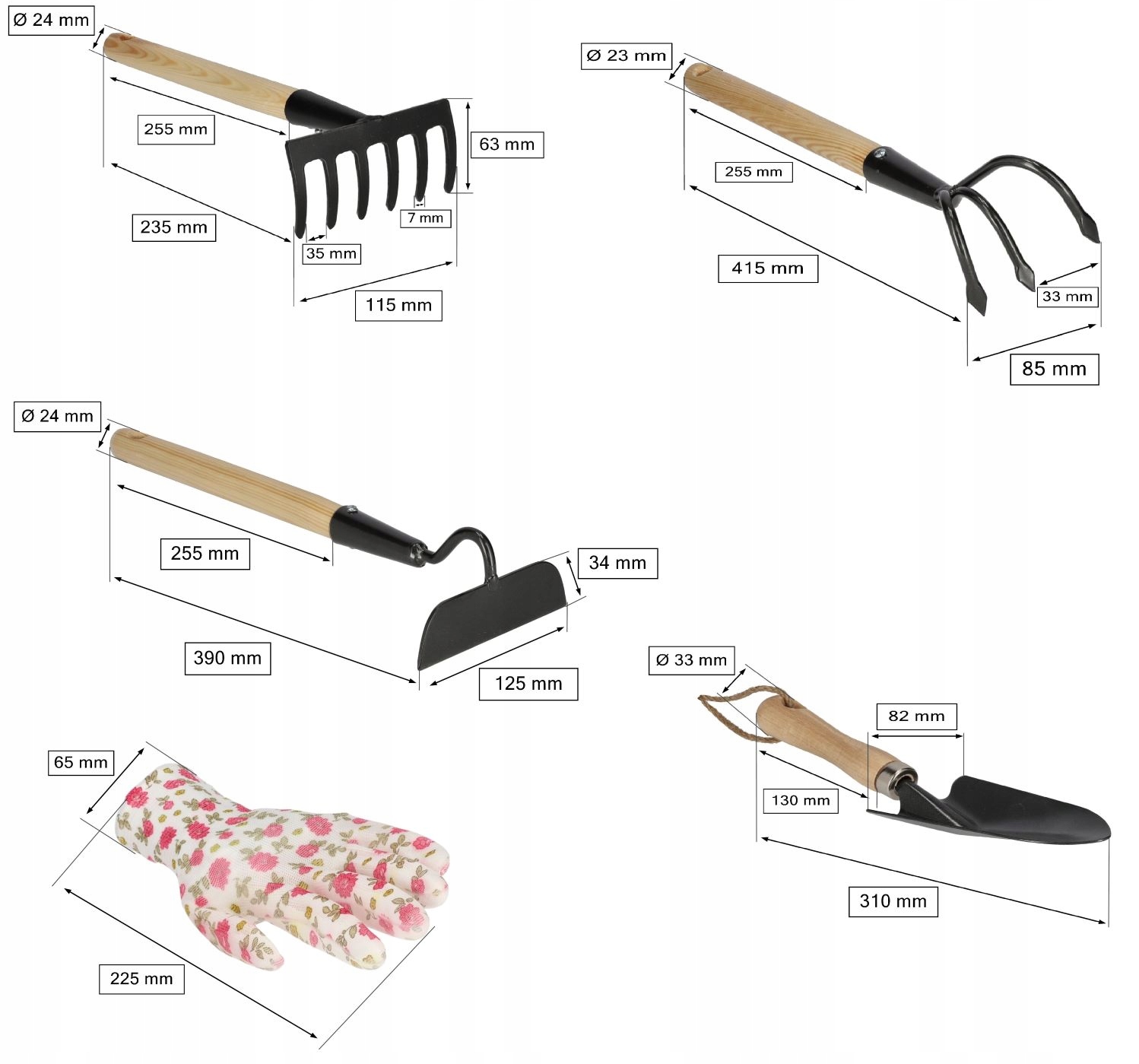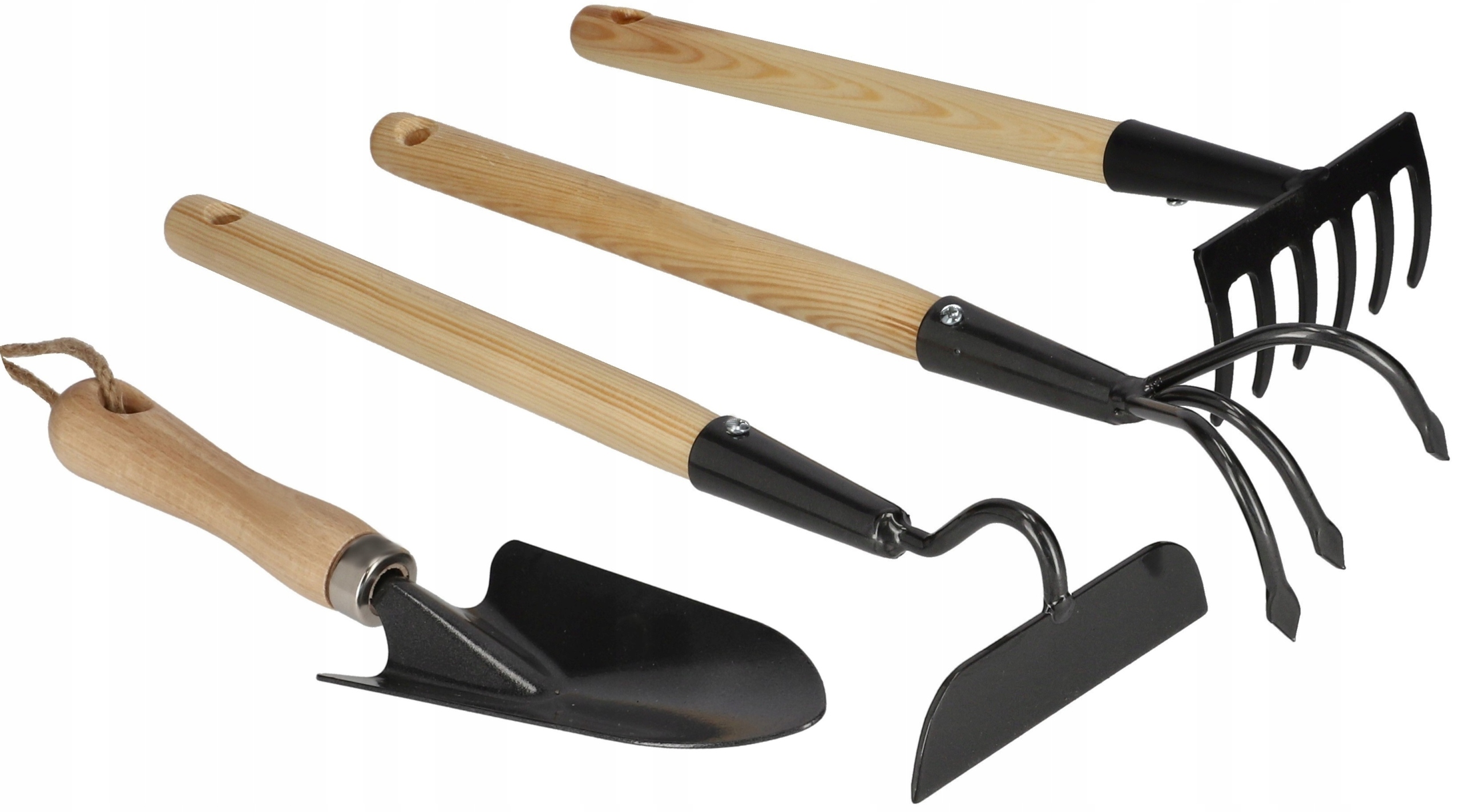 Kompletność to główny atut tego rozbudowanego zestawu. Dzięki temu, że zebraliśmy tu łopatkę ogrodniczą, grabie metalowe, spulchniacz, motyczkę oraz rękawiczki, nie będą ci straszne żadne ręczne prace ogrodowe.
