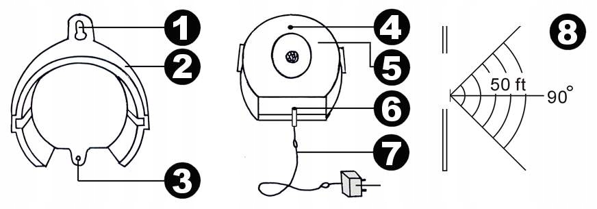 W skład zestawu wchodzi odstraszacz, adapter (zasilacz), przedłużacz o długości 5,5 metra i specjalnie zaprojektowana osłona montażowa.