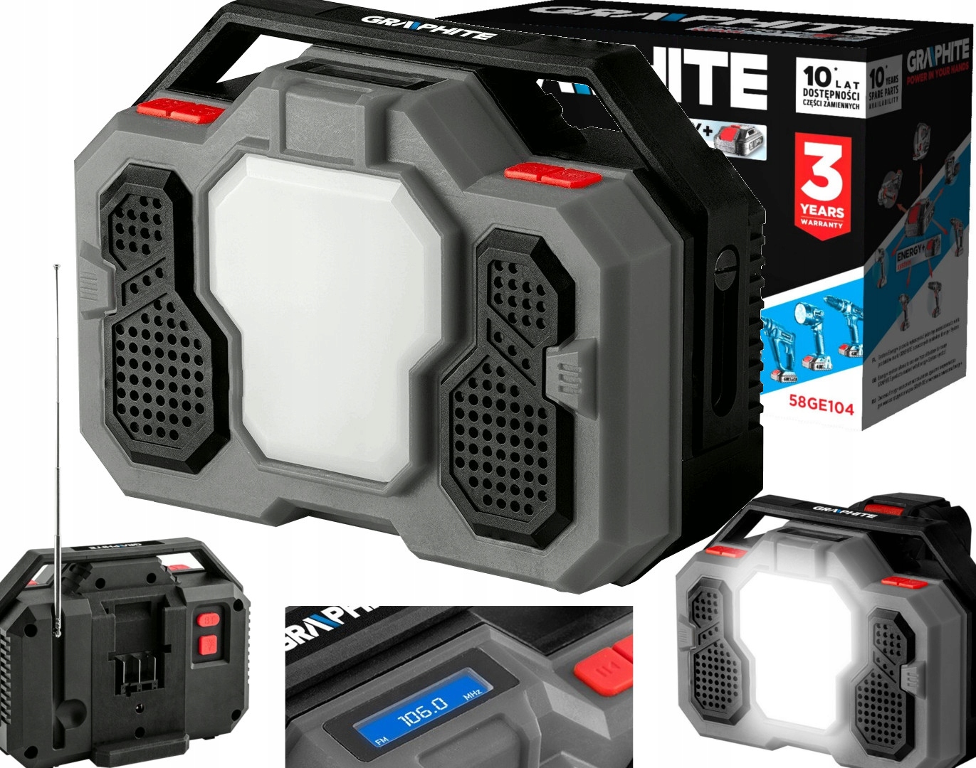 Аккумуляторно-сетевое Радио Energy 18v, Li-lon, без аккумулятора 58ge104 марки GRAPHITE пыленепроницаемое, пыленепроницаемое и деликатное оборудование, рекомендуется для строительных площадок, мастерских и в залах.
