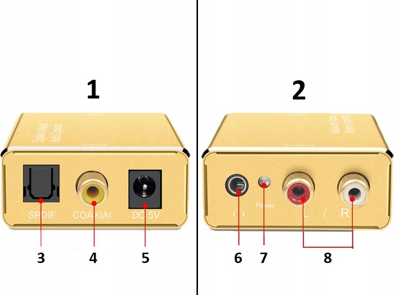 Konwerter umożliwia podłączenie urządzeń wyposażonych w cyfrowe wyjście optyczne audio (Toslink/SPDIF) lub Coaxial (telewizor, dekoder, komputer, laptop, konsole itp.) do kina domowego, amplitunera, wzmacniacza, głośników lub słuchawek wyposażonych w złącze analogowe typu RCA/Cinch lub mini-jack 3,5mm.