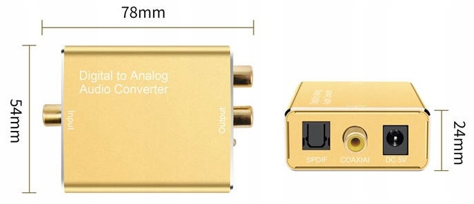Конвертер DAC позволяет подключение устройств старшего поколения с разъемом типа RCA, в том числе кинотеатров бытовой, ресивер, усилитель, Hi-Fi башня и т.д. для новых устройств поколения, такие как телевизоры, приставки, консоли и компьютеры с выходом оптический или коаксиальный.