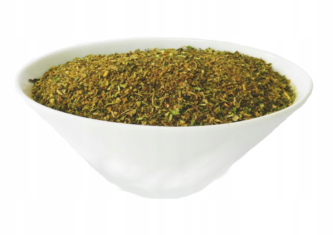 Składniki: bazylia, kolendra, czosnek, cząber, oregano, kozieradka, kminek, pietruszka nać, cebula, chilli, rozmaryn, pieprz czarny, tymianek, kurkuma, estragon.
