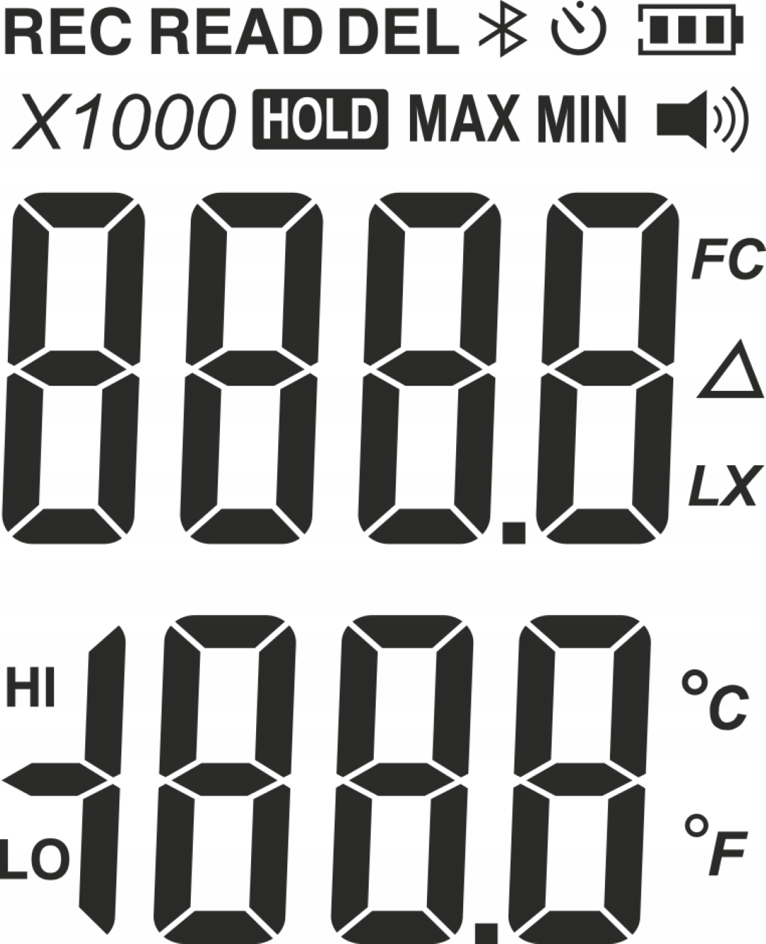 Pomiar oświetlenia zakres 1 ~ 200 000 luksów