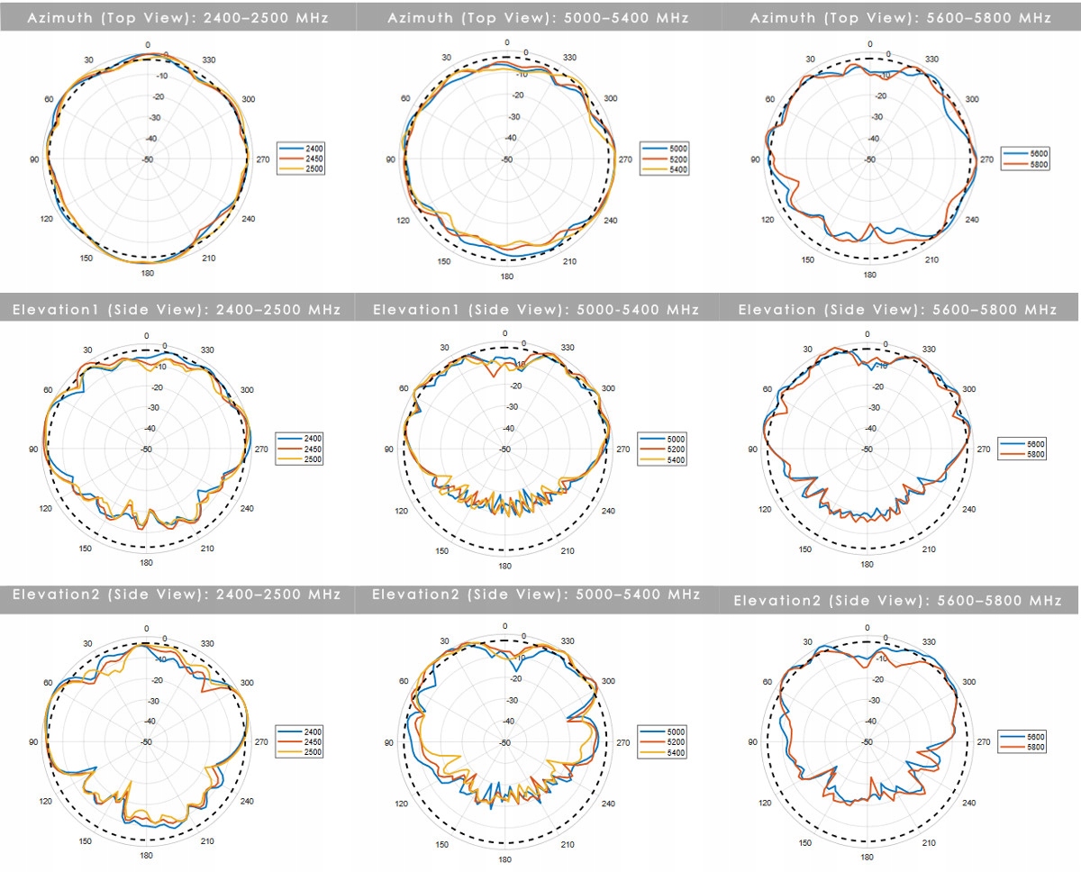 7 dBi to wzmocnienie szczytowe we wszystkich pasmach od 2400–2500 i 5000–6000 MHz