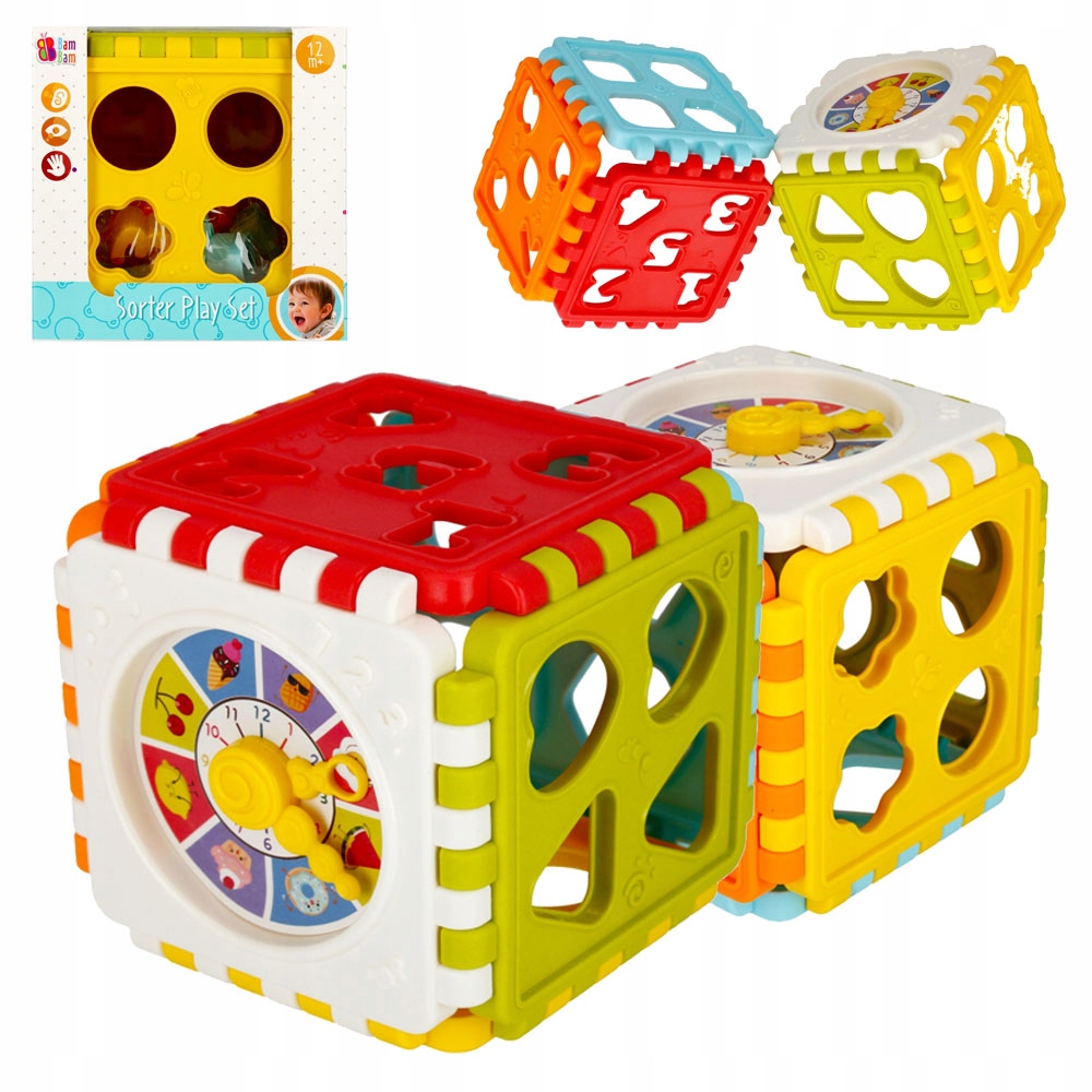 Zabawka stwarza doskonałe możliwości, by wspierać malucha w nauce przewidywania, logicznego myślenia i rozwiązywania problemów. Ten kolorowy sześcian, na którego ścianach mieszczą się zróżnicowane otwory w kształcie figur geometrycznych, cyfr, oraz zegara angażuje dzieci w wartościową zabawę wprowadzając elementarne podstawy nauki z zakresu matematyki, geometrii, przyrody czy technologii - znajomość zegara.