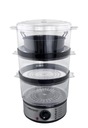 Три контейнера с большой емкостью они позволяют готовить несколько разных блюд одновременно. Встроенный таймер обратного отсчета времени приготовления облегчает процесс приготовления. Благодаря простой конструкции сервис и очистка пароварки очень проста.