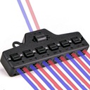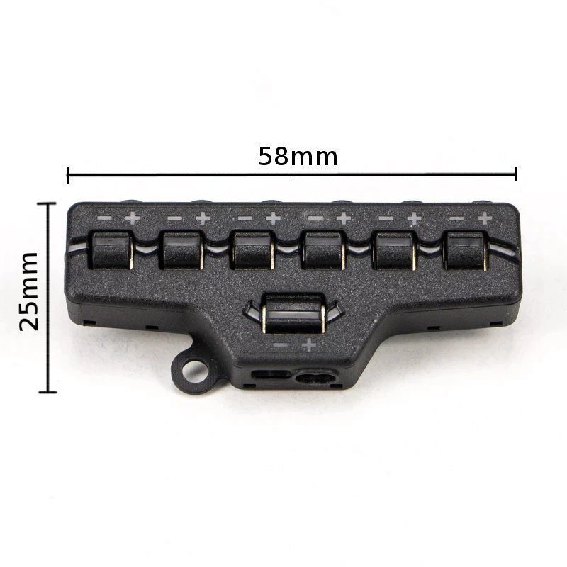 Wysokiej jakości rozdzielacz zasilania DC. Posiada 2 wejścia ("+" i "-"), oraz 12 wyjść (6x "+" i 6x "-"). Idealnie sprawdzi się wszędzie tam gdzie potrzebne jest nam rozgałęzienie zasilania dla kilku urządzeń. Szybki i solidny montaż zapewniają wciskane zaciski, które pozwolą nam w błyskawiczny sposób zapiąć i rozpiąć przewód. Rozdzielacz dodatkowo został wyposażony w oczko montażowe, dzięki któremu możemy go przykręcić do dowolnej powierzchni za pomocą wkręta lub śruby.