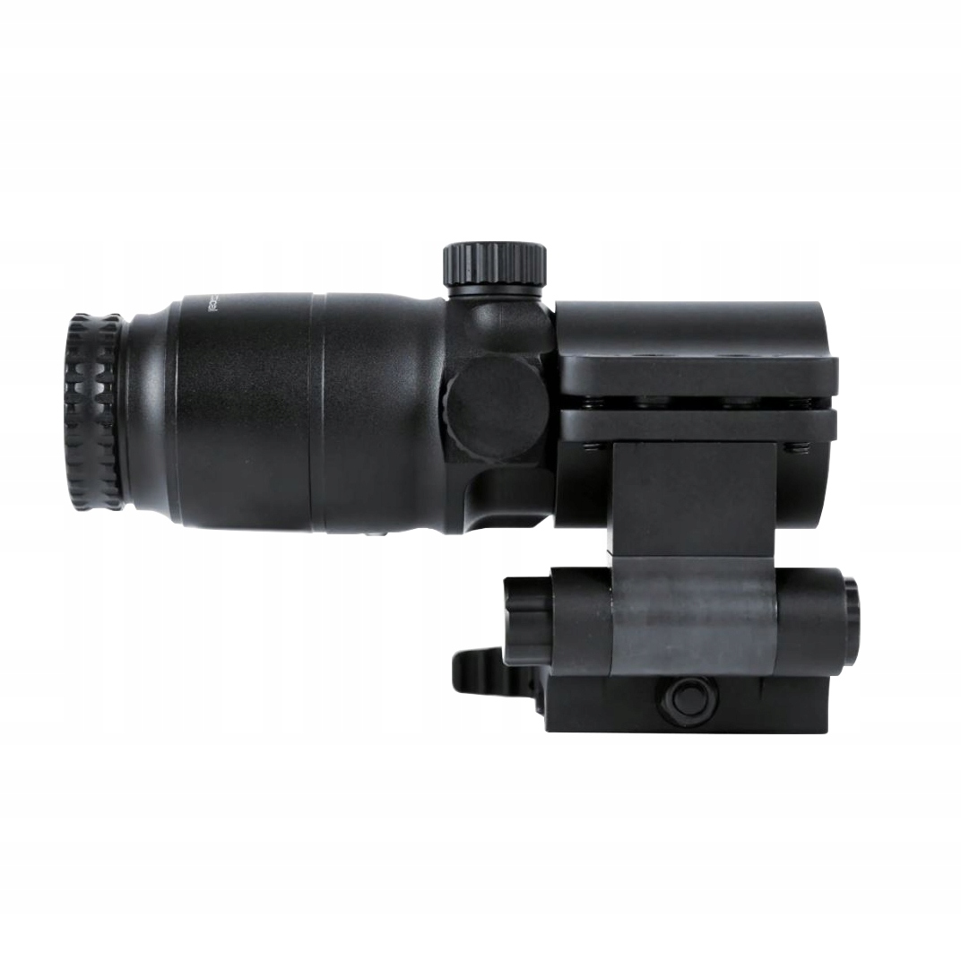 Tandemowy układ kolimator - powiększalnik jest niezwykle popularnym rozwiązaniem głównie przez swoją elastyczność. Dzięki zastosowaniu wychylnego montażu urządzenie może zostać z łatwością umieszczone w osi kolimatora, zapewniając 4-krotne powiększenie i możliwość wygodnego prowadzenia ognia na średnich dystansach. W momencie kiedy urządzenie nie jest wykorzystywane, wygodnie spoczywa na boku karabinka, nie ograniczając pola widzenia podczas celowania.