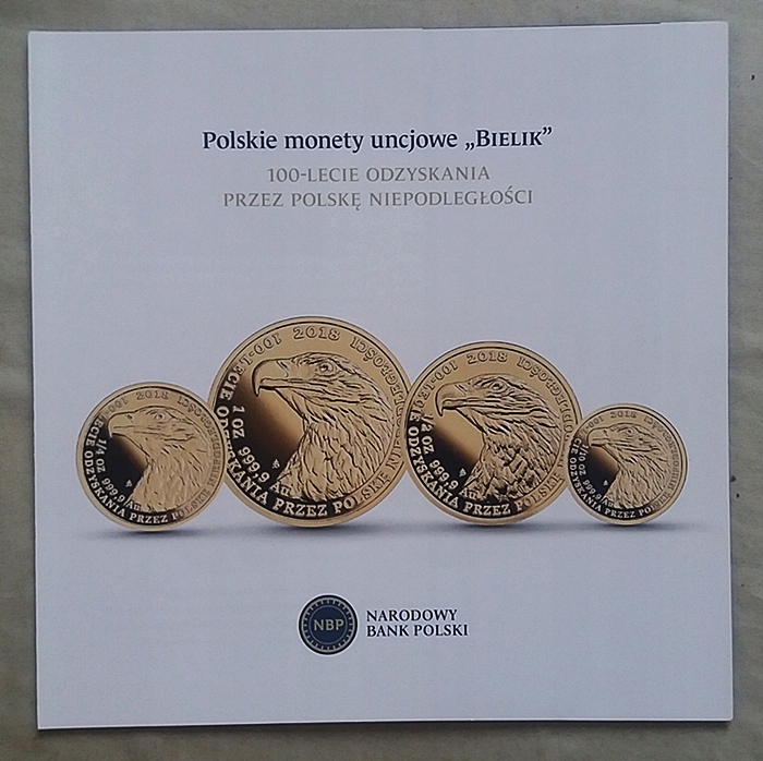 Mam do sprzedania folder do monety złotej (uncjowej) - 100 lecie odzyskania przez Polskę niepodległości - ORZEŁ BIELIK