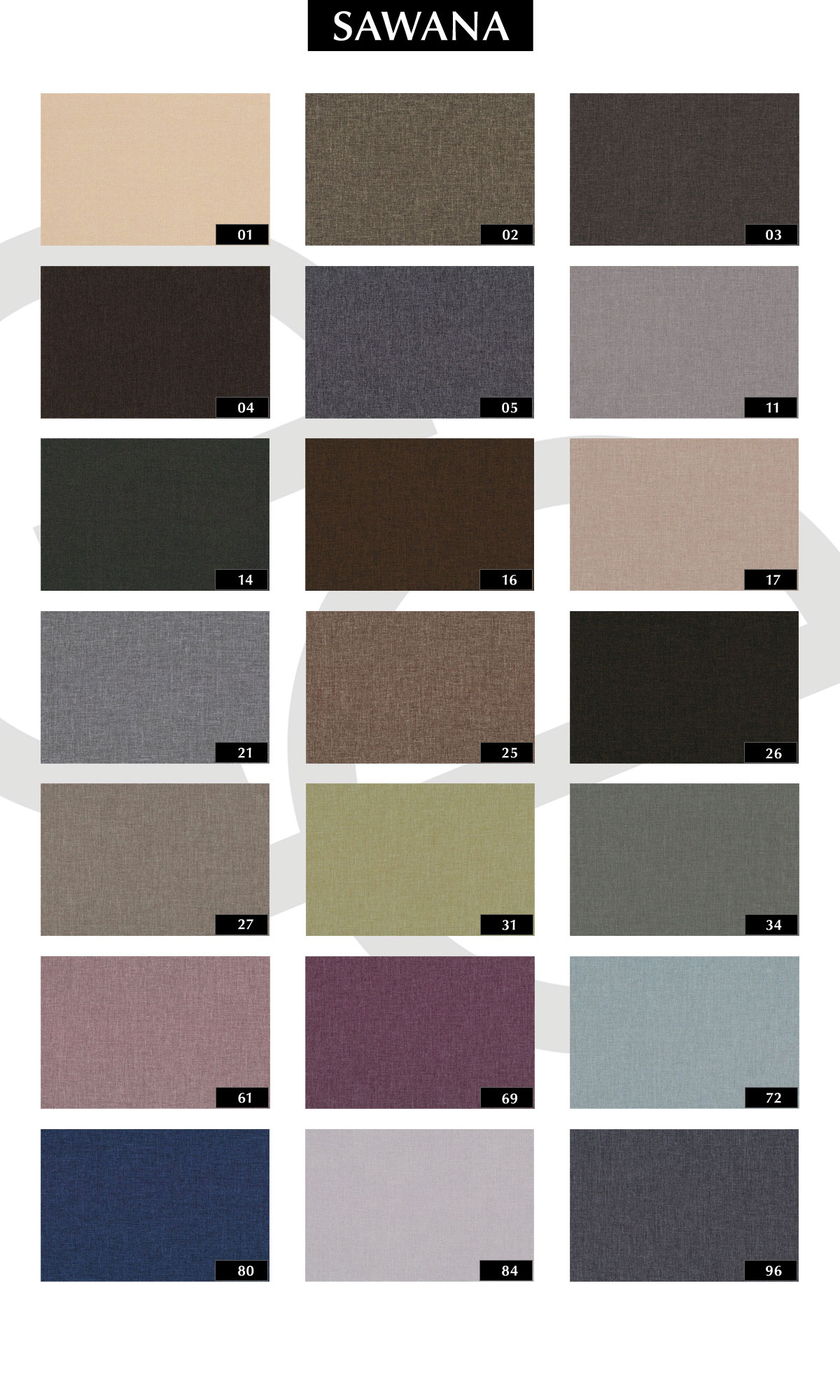 SAWANA-это мягкая на ощупь обивочная ткань с ровной структурой плетение полотняной косы. Высокопрочная мебельная ткань и устойчивость к воздействию огни. Легко содержать в чистоте.