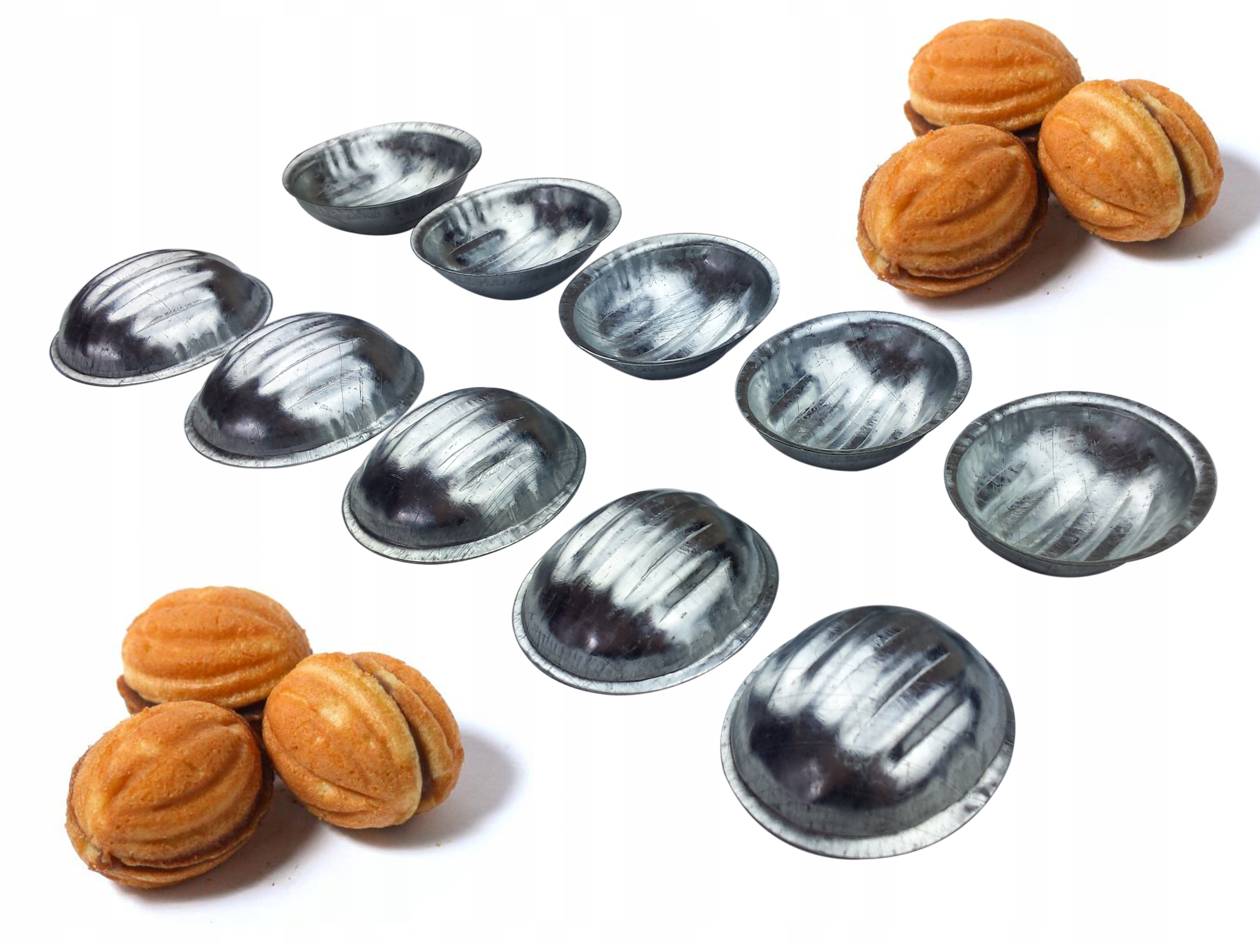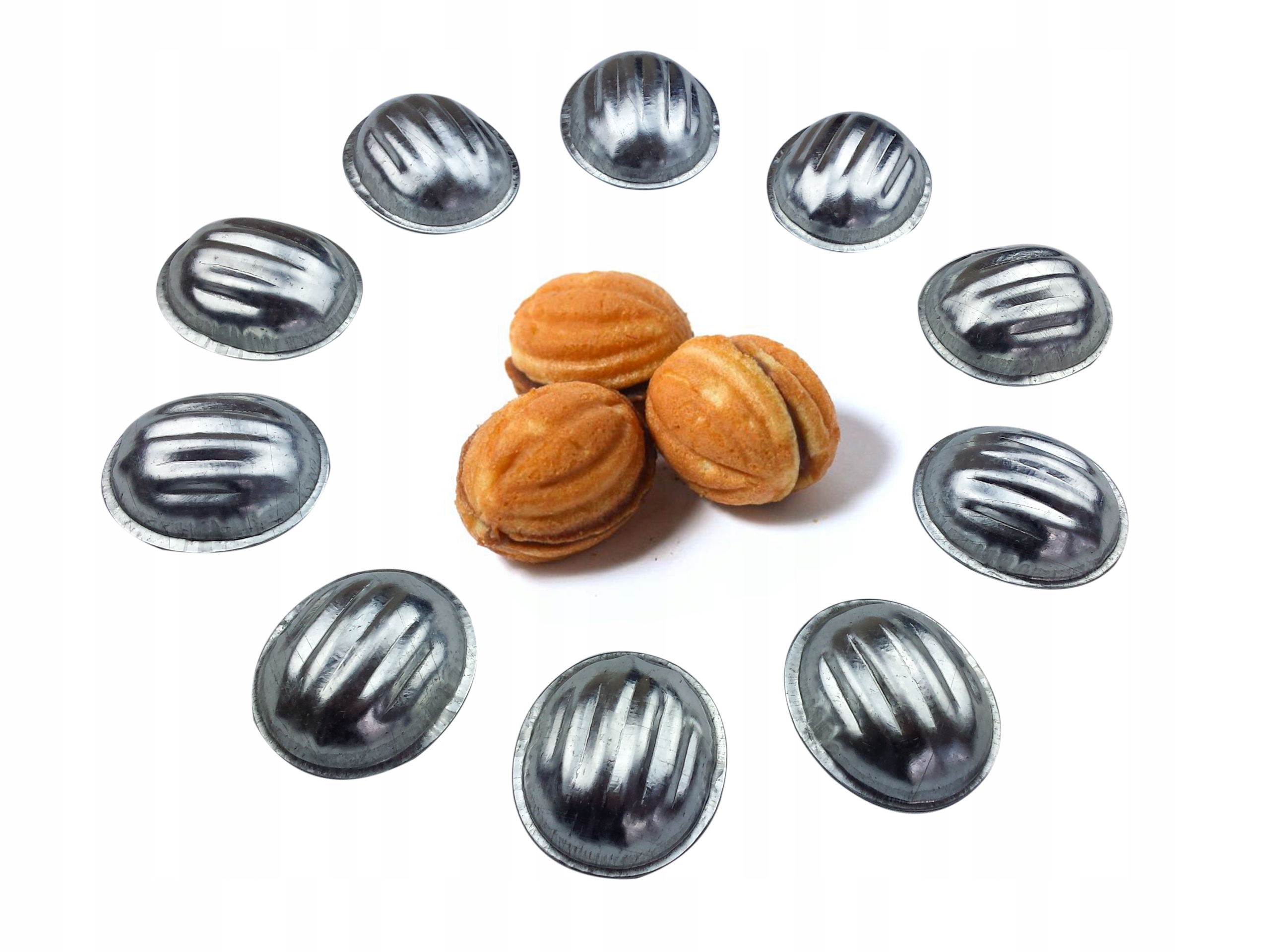 Zestaw składa się z 10 foremek (połówek) do wypiekania wspaniałych i smacznych orzeszków w piekarniku.