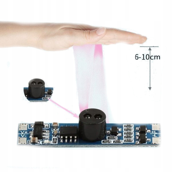 Wyłącznik VD01 do profili LED bezdotykowy przeznaczony do załączania / wyłączania taśm LED montowanych w profilach LED. Włączanie i wyłączanie ON/OFF następuje poprzez ruch ręki w odległości do 10cm od czujnika.