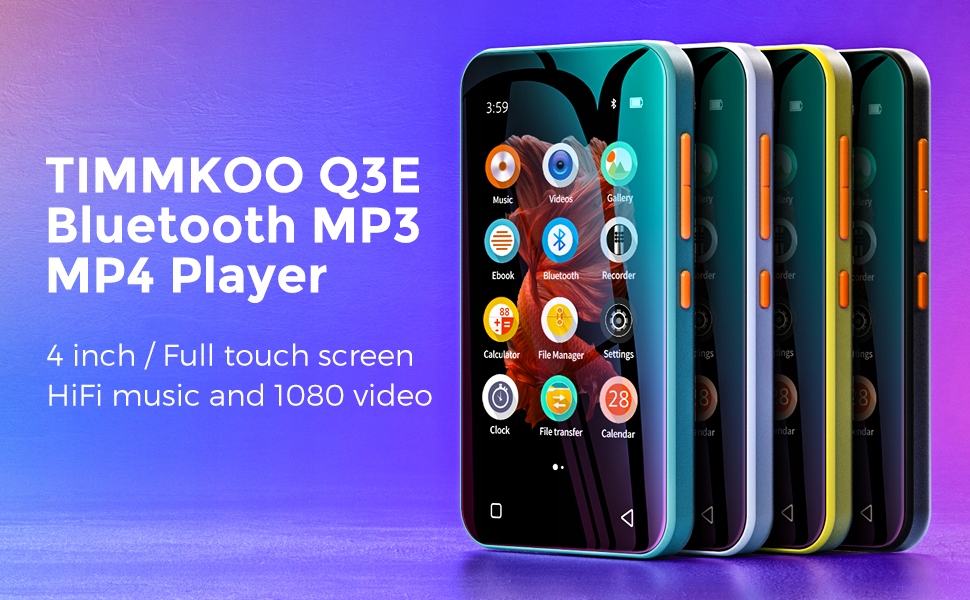 TIMMKOO Odtwarzacz MP3 z Bluetooth, 4.0-calowy ekran dotykowy Odtwarzacz MP4 MP3 z głośnikiem, przenośny dźwięk HiFi Odtwarzacz MP3 z Bluetooth, dyktafon, e-book, obsługuje do 512 GB karty TF