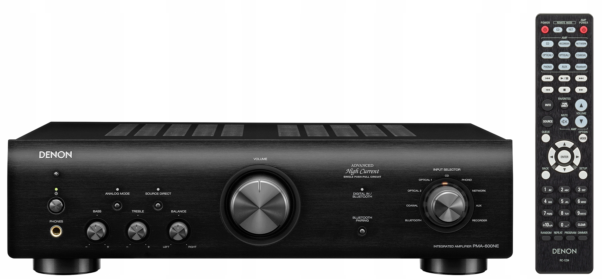Zakupując wzmacniacz DENON PMA-600NE, otrzymujesz urządzenie podstawowe, kabel zasilający oraz pilota.