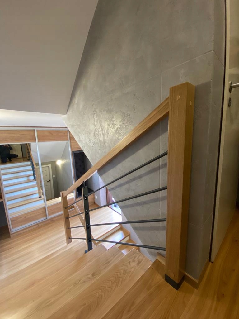 Oferowana balustrada model ND2 od Alleschody idealnie pasuje do nowoczesnych wnętrz w różnych stylach. Połączenie drewna z okuciem malowanych w RALu stanowi bardzo modne i efektowne połączenie.