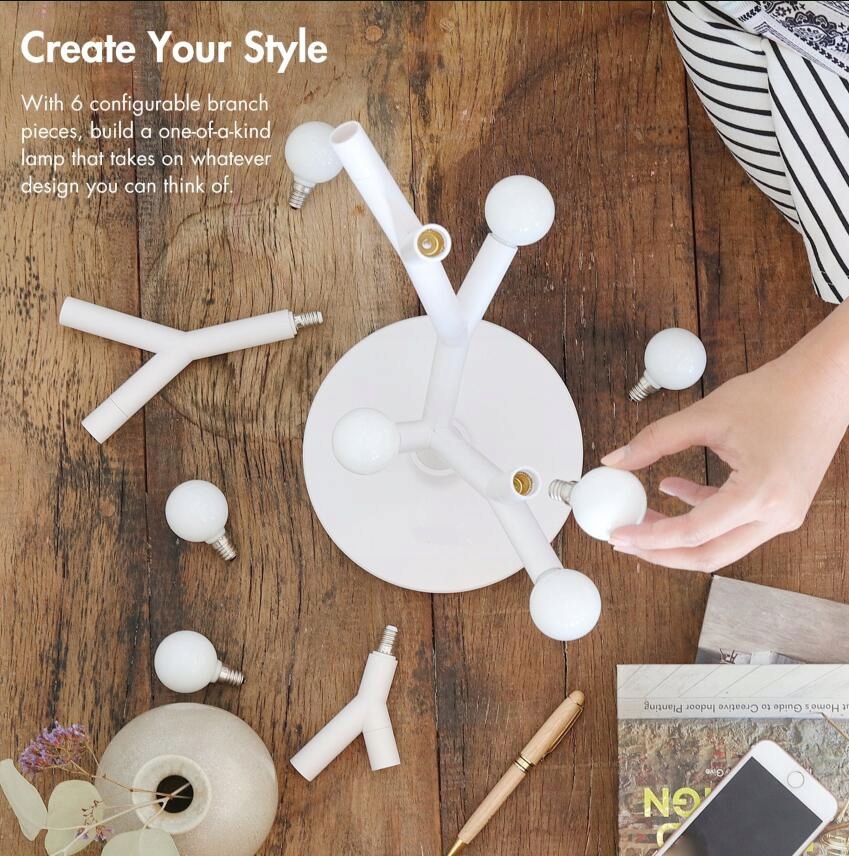 Lampa ma sześć "gałęzi" i dziewięć żarówek. Możesz używać swojej wyobraźni i swobodnie ją montować.