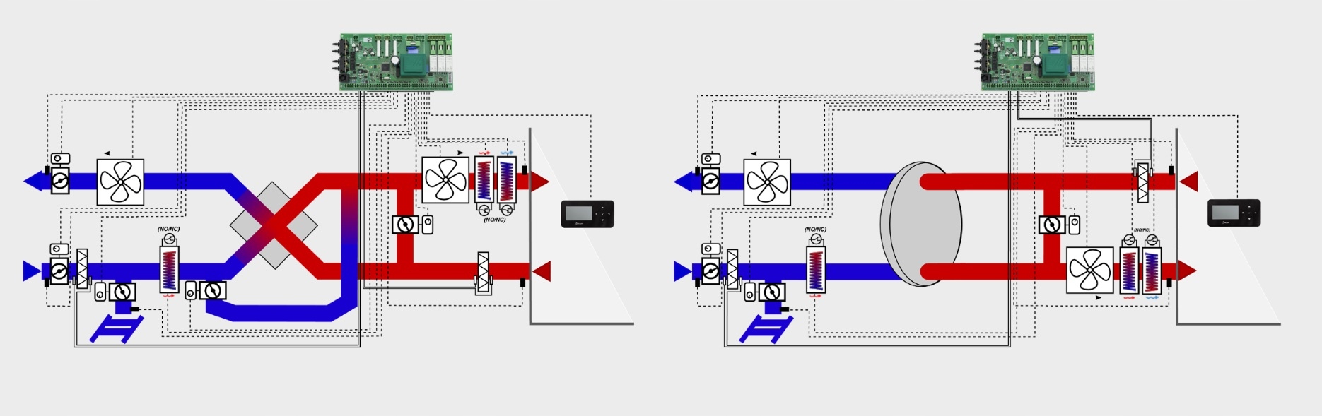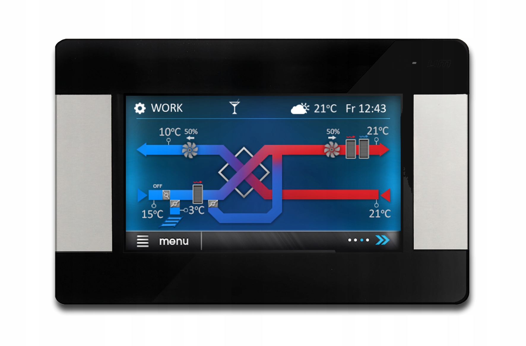 * плавно контролируют работу вентиляторов и вытяжка обеспечивает высокую эффективность рекуперации тепла и воздухообмена в помещениях на основе предустановленных графиков или в ручном управлении