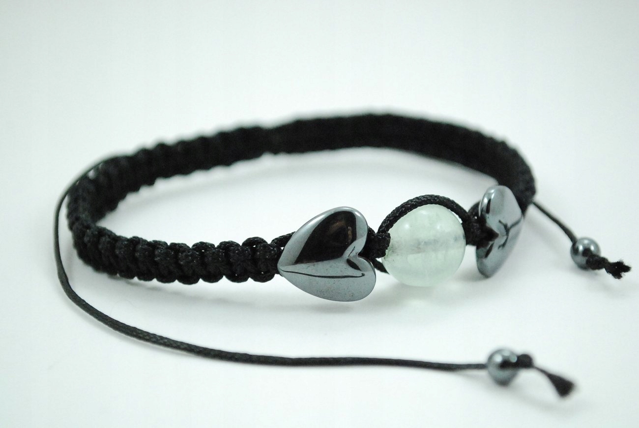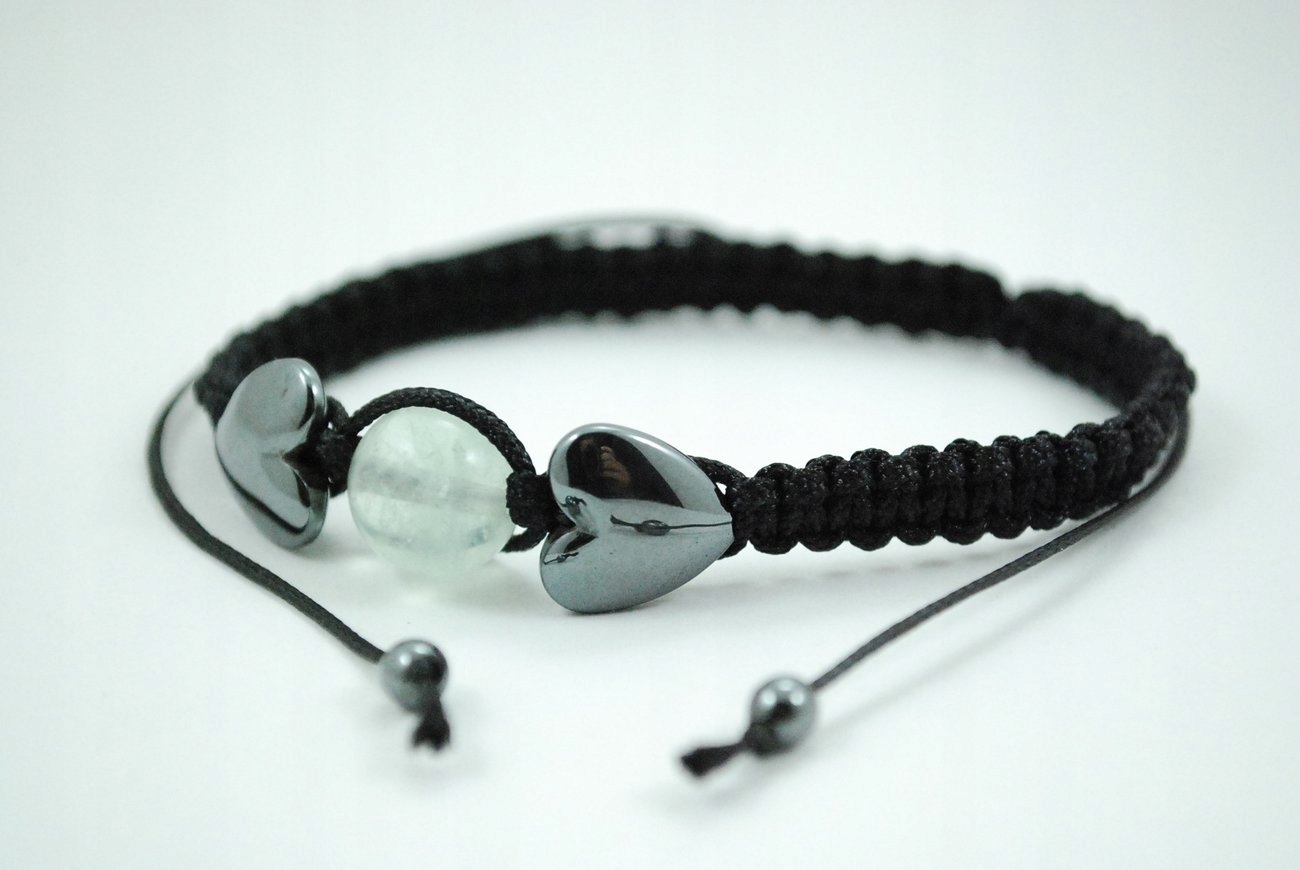 Bransoletka z naturalnym kamieniami fluorytu i serduszkami hematytowymi.