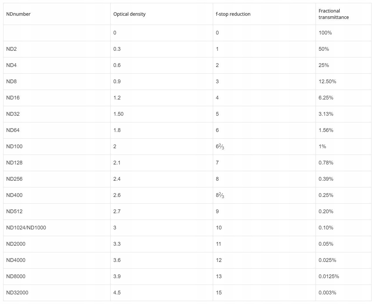 Zmniejsza ilość światła wpadającego do obiektywu. Przydatny w sytuacjach, w których trzeba uzyskać rozmycie ruchu (rzeki, wodospady, poruszający się ludzie) lub użyć otwartej przysłony z lampą błyskową, aby uniknąć prześwietlenia.