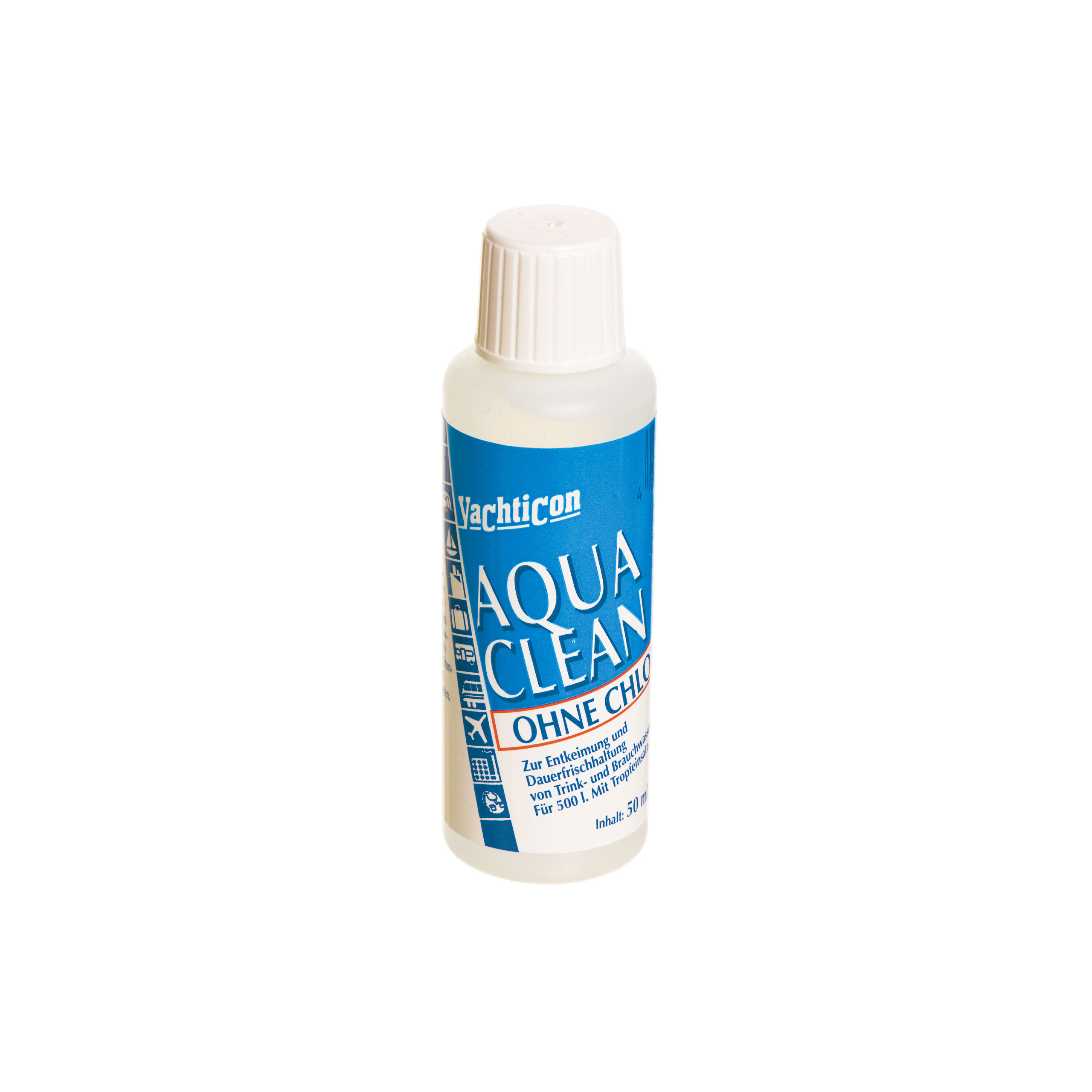 Yachticon Aqua Clean ohne Chlor Liquid – do uzdatnienia i długotrwałego przechowywania wody pitnej w zbiorniku. Opakowanie wystarcza do uzdatnienia 1.000 litrów wody. Bezzapachowy i bez smaku. Nie zawiera chloru. Utrzymuje wodę bez zarazków do sześciu miesięcy. Na bazie związku srebra. Odmierzyć odpowiednią ilość do zbiornika przed wlaniem do niego wody. Duża podziałka = 100l wody, mała podziałka = 50l wody. Woda będzie gotowa do użycia po około 2 godzinach.