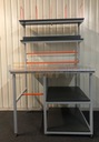 uchwyt na drukarkę do etykiet, uchwyt do worków na odpady, półki boczne, moduł oświetlenia, moduł cięcia folii, zmiana materiału blatu roboczego.