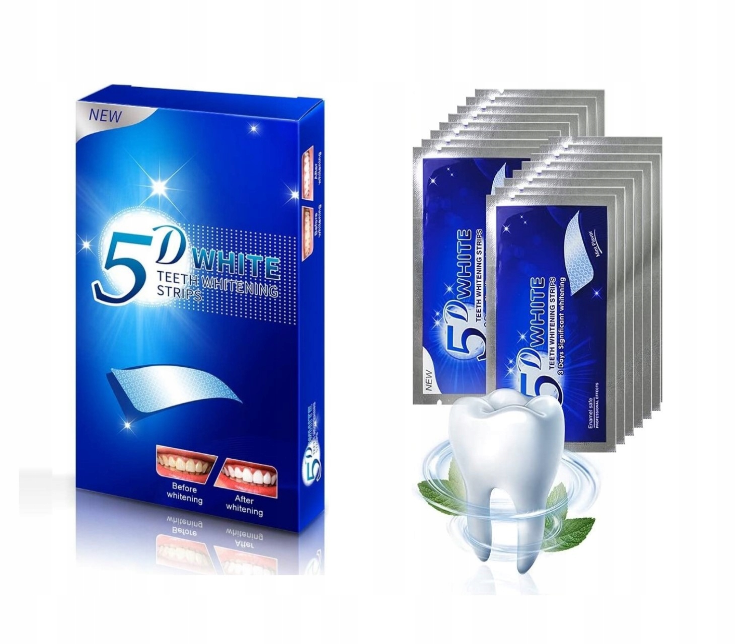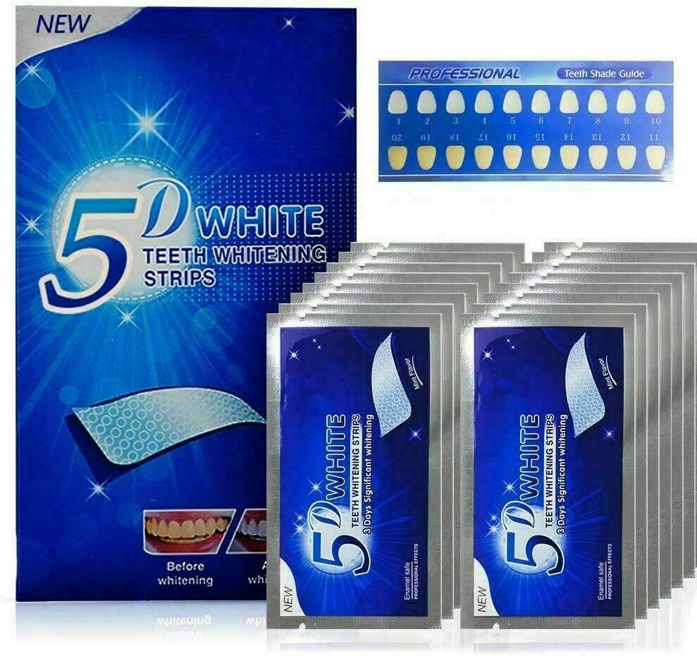 - 1 комплект-14 пакетиков (28 полосок) 5D WHITE отбеливатели используют проверенный и безопасный отбеливающий ингредиент, который они также используют стоматологи