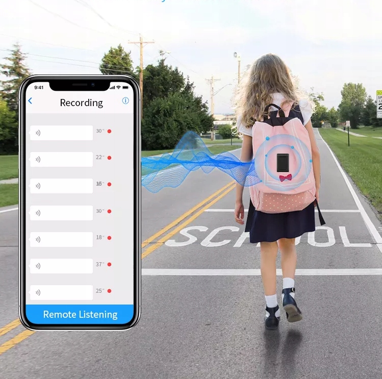 Podsłuch - wystarczy wysłać SMS do lokalizatora urządzenie oddzwoni do nas, po zadzwonieniu na nr SIM w urządzeniu połączenie zostanie odebrane automatycznie, dzięki czemu uzyskamy odsłuch otoczenia, lokalizator zapisuje również wykryty dźwięk na aplikacji - funkcja VOX