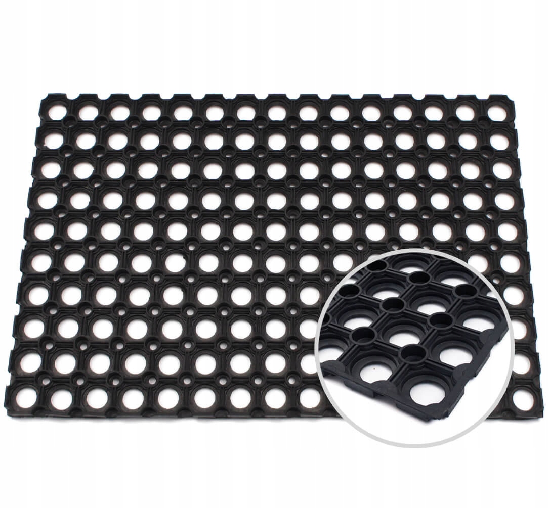 Antypoślizgowy spód: gumowy spód zapobiega, przesuwaniu się wycieraczki tym samym dbając o bezpieczeństwo podczas jej użytkowania.
