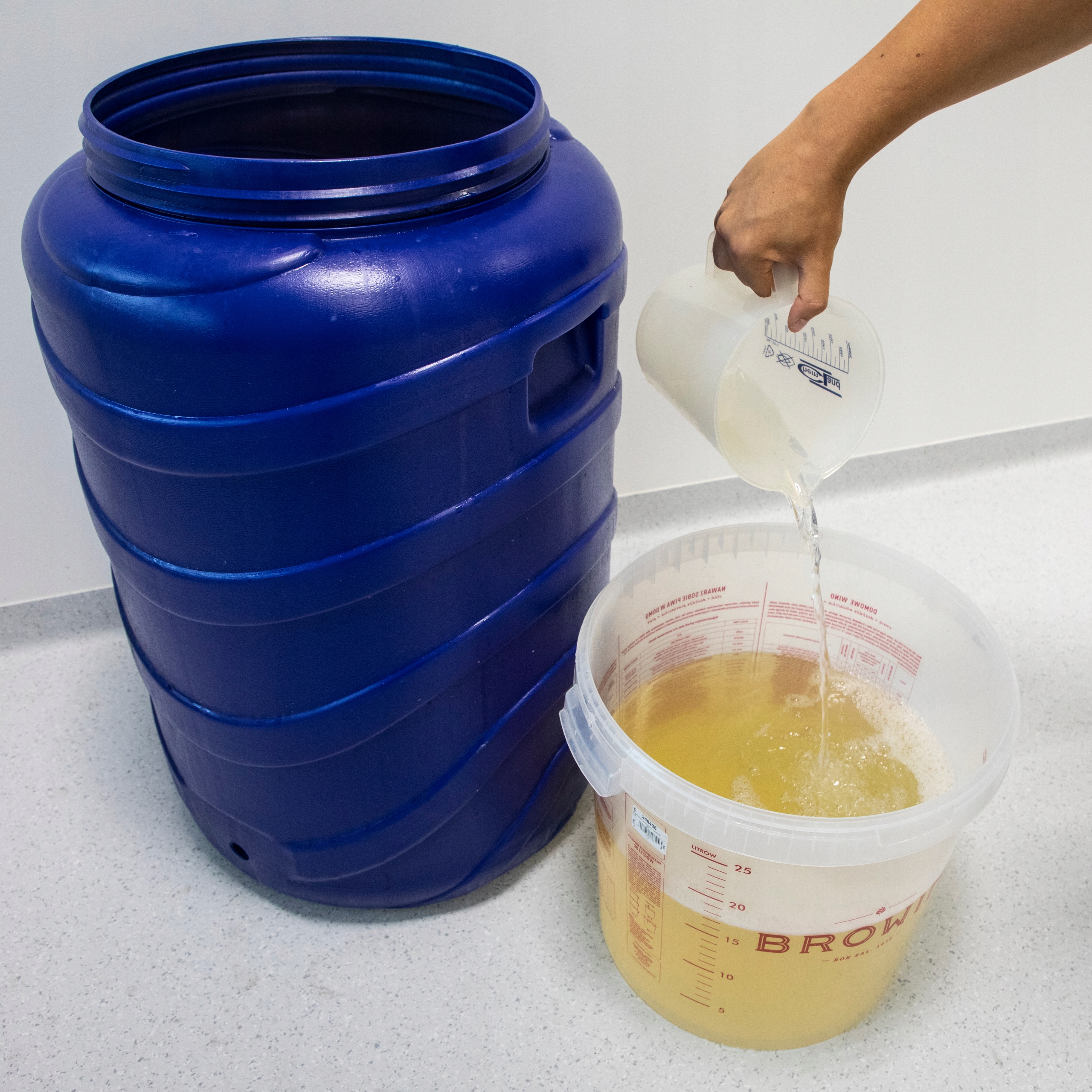 Do pojemnika fermentacyjnego wsyp I porcję cukru i rozpuść ją w odpowiedniej ilości letniej wody o temp. ok. 30⁰C. Następnie wsyp całą zawartość torebki i dokładnie wymieszaj. Tak przygotowany roztwór poddaj fermentacji przez określoną w tabeli na opakowaniu ilość dni, w temp. 20-25⁰C.