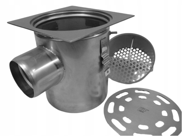 Wpust podłogowy ze stali nierdzewnej z odpływem bocznym DN100.