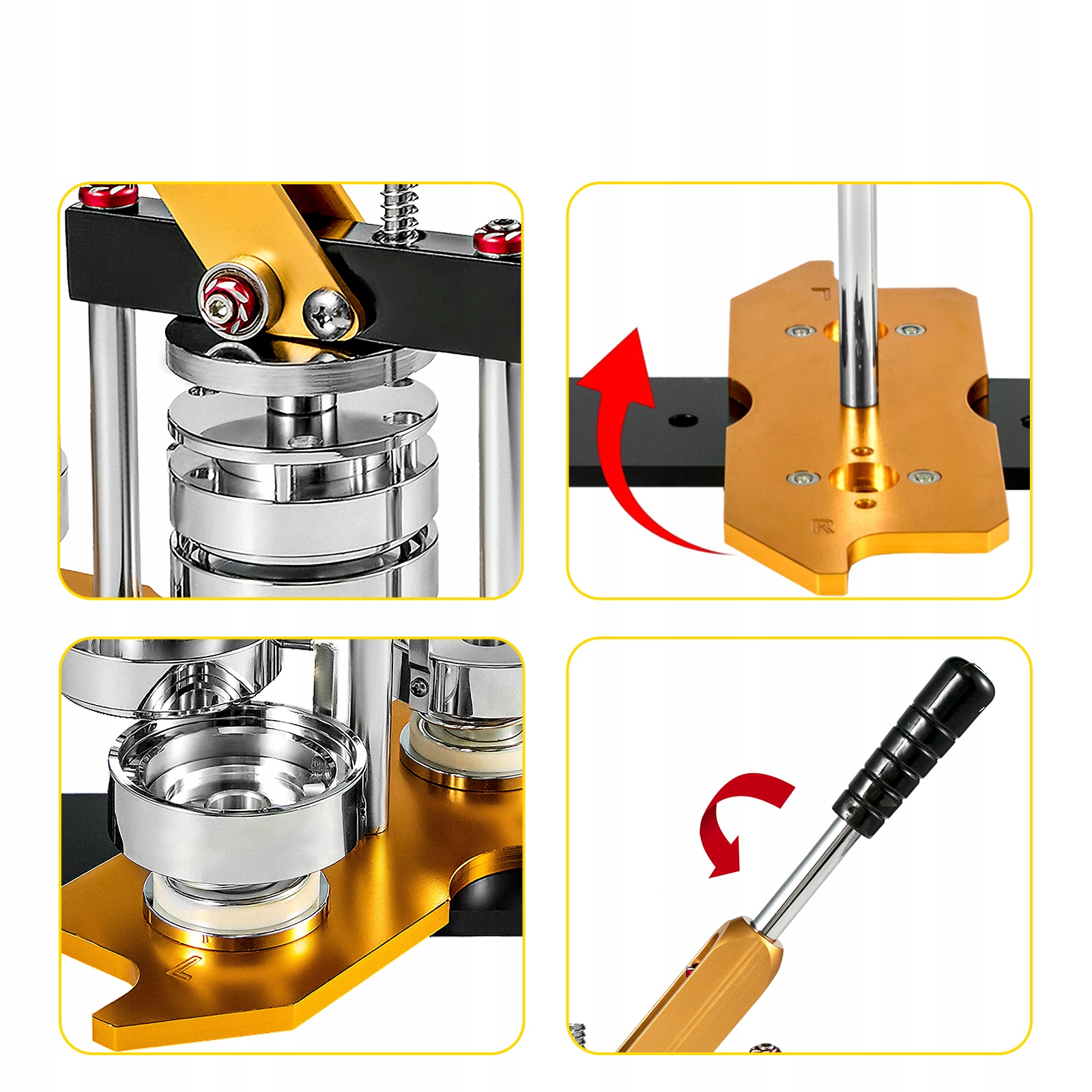 Wiele zastosowań: Ta maszyna do produkcji guzików jest doskonała do przypinania guzików, opasek do sznurków, breloczków, otwieraczy do butelek itp. Są szeroko stosowane do tworzenia domowych guzików do kampanii politycznych lub wydarzeń sportowych.