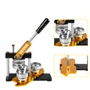 Wystarczy dwukrotnie nacisnąć uchwyt, aby zakończyć jeden przycisk. Dzięki obrotowej podstawie i wystającym końcówkom maszyny do dziurkowania znaczków możesz wyprodukować 200-300 sztuk na godzinę przy mniejszym wysiłku.